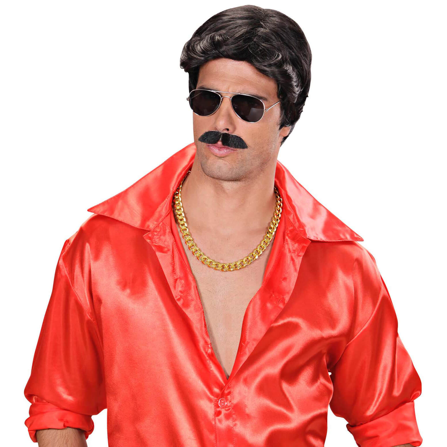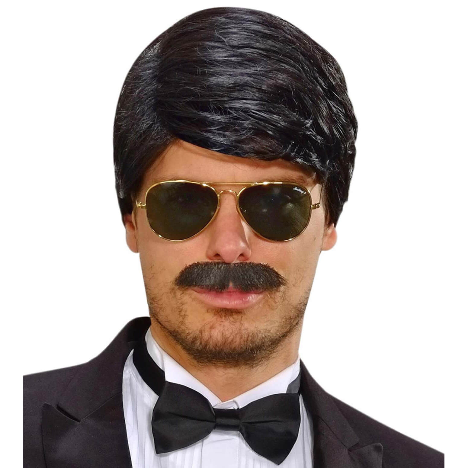 Perücke kurz glatt+Bart Dream H. Playboy Kurzhaarfrisur Seitenscheitel Oberlippenbart Herrenperücke einfarbig schwarz