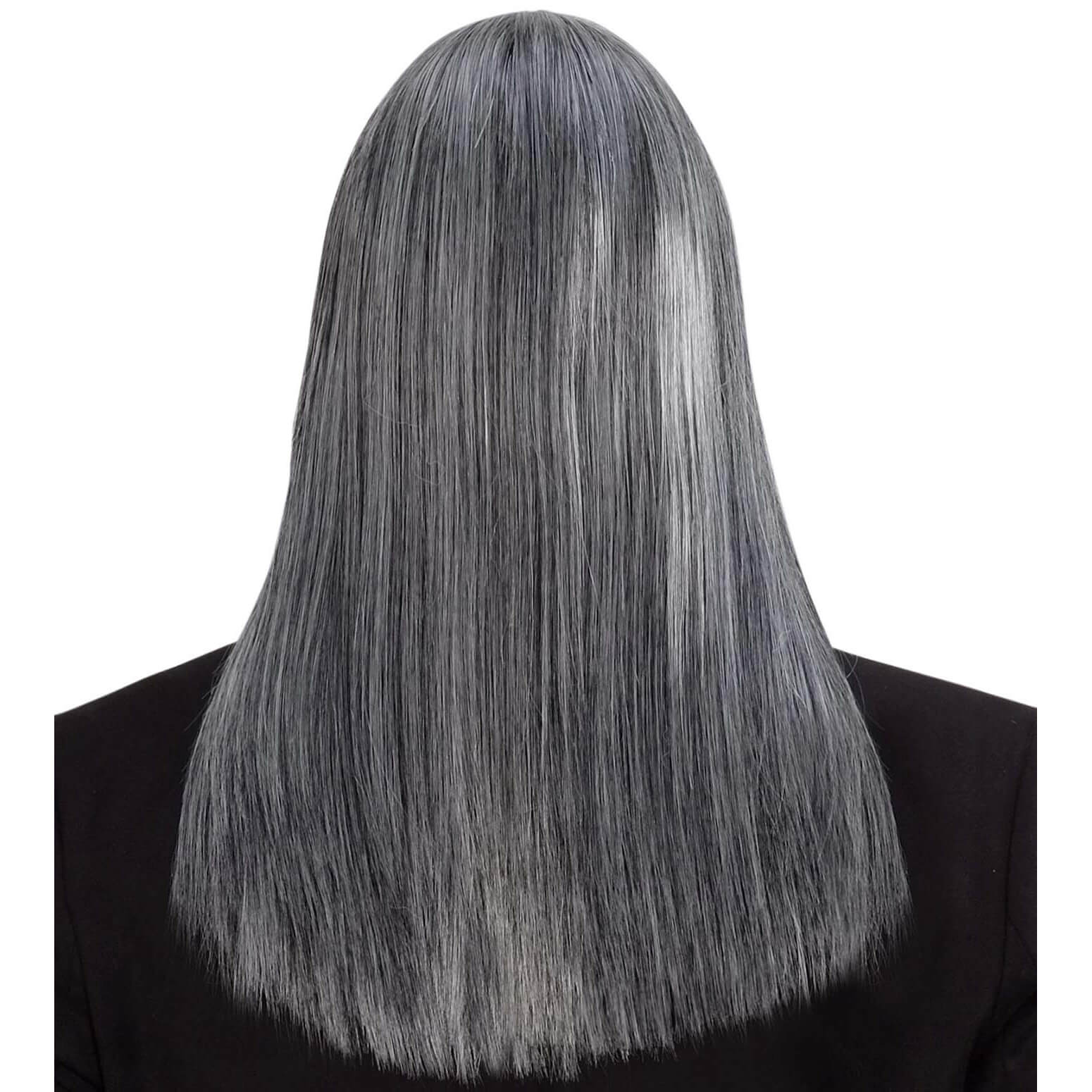 Vampir / Zauberer Perücke lang glatt Dream Hair Victor Langhaarfrisur mit Mittelscheitel Herrenperücke grau