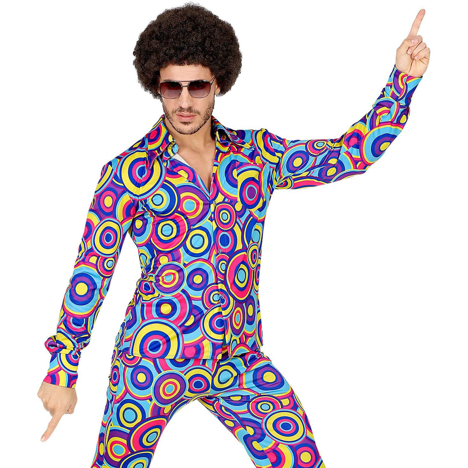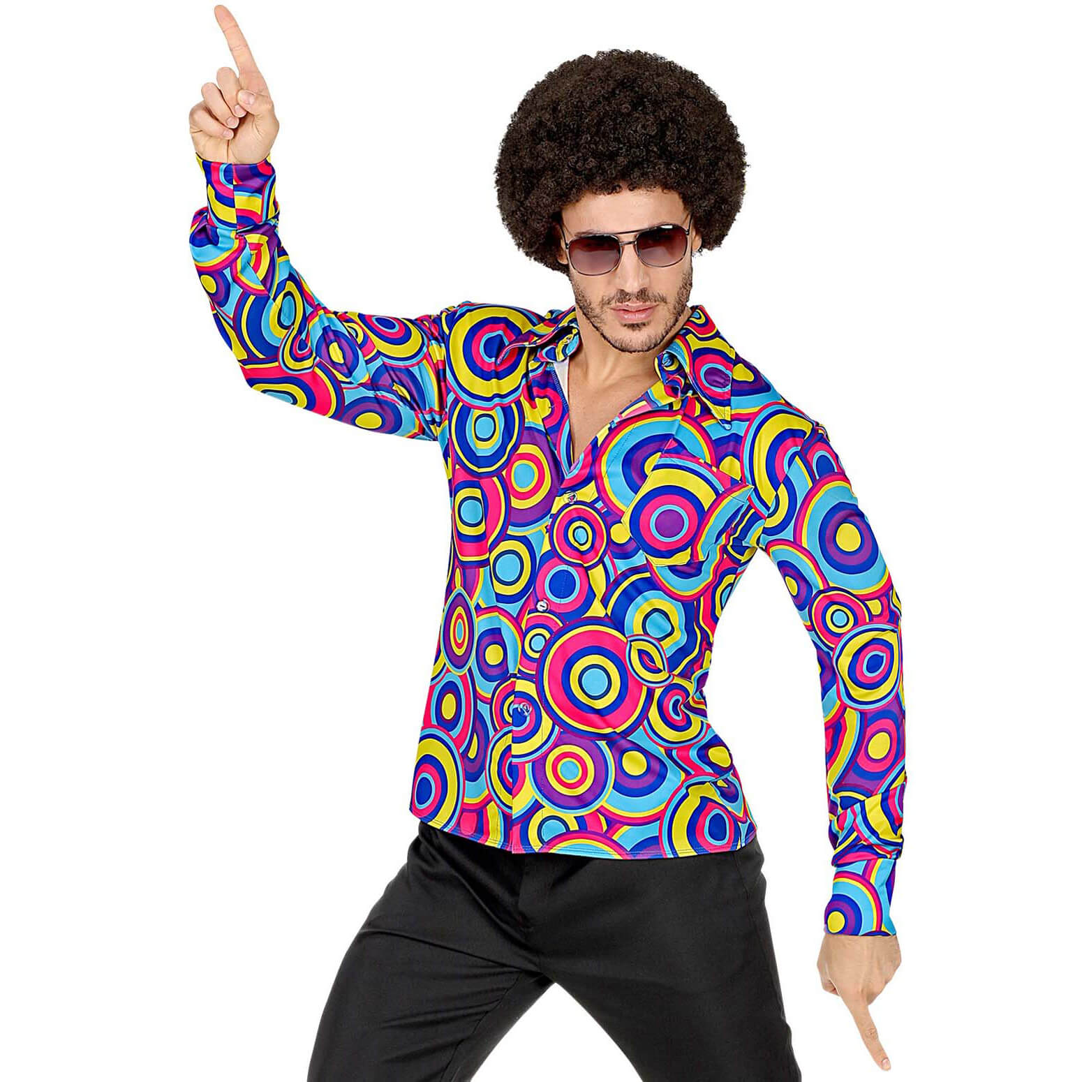 70er Jahre Hippie Hemd Bluse mit Elastan Motiv Groovy Circle Doodles blau-lila – (ARTIKEL/REFERNZ: 8003558093014/WI09301-8003558093021/WI09302-8003558093038/WI09303 – Kategorie/Suche: – Hersteller: Widmann S.r.l.)
