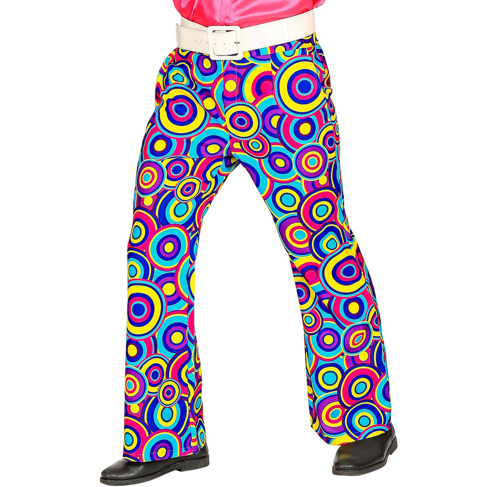 70er Jahre Hippieboy Schlaghose lang in fester Qualität mit Taschen Motiv Groovy Circle Doodles blau-bunt – (ARTIKEL/REFERNZ: 8003558093045/WI09304-8003558093052/WI09305-8003558093069/WI09306 – Kategorie/Suche: – Hersteller: Widmann S.r.l.)