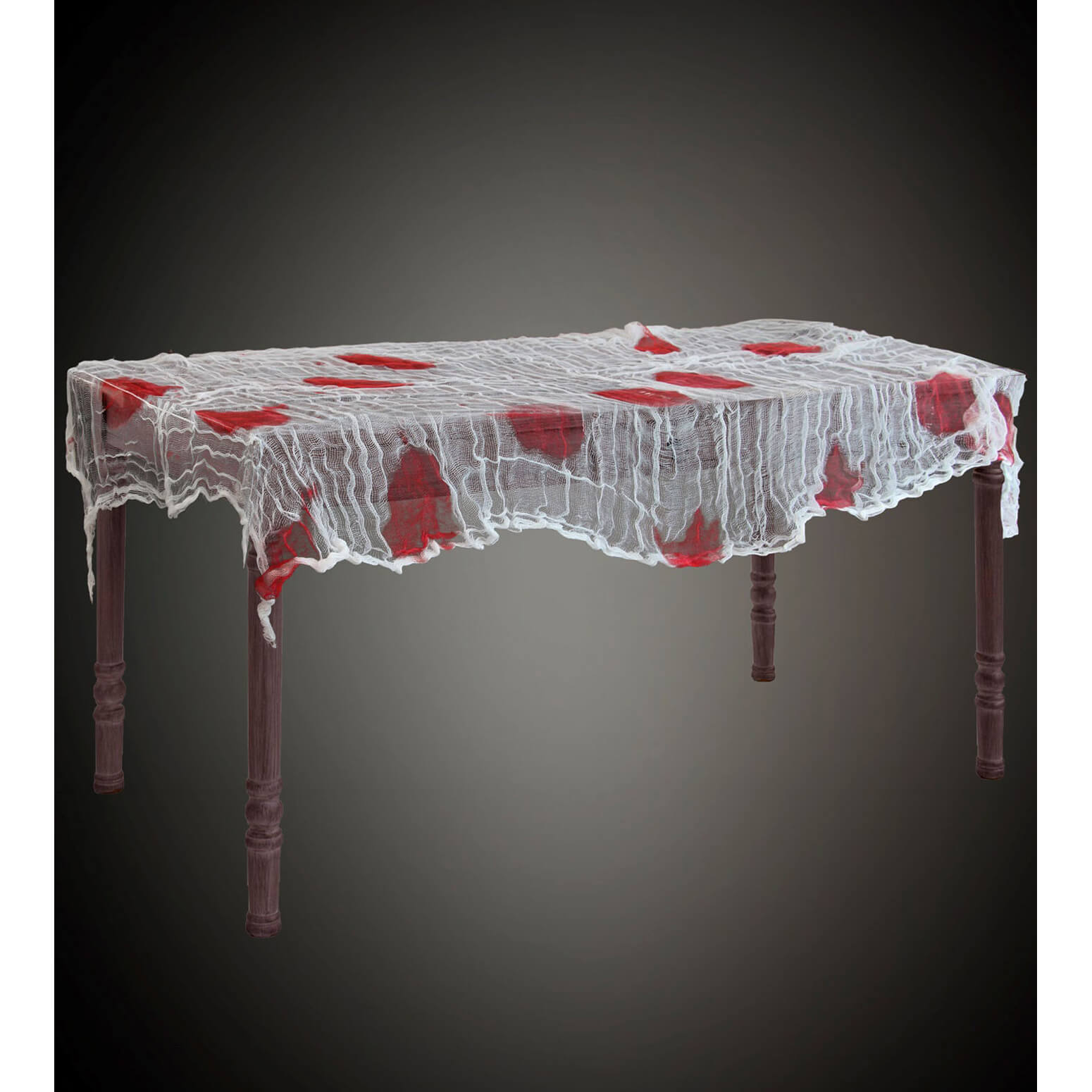 Blutige Deko Stoffbahn Fetzen Stoff 80x180cm Mull auch als Tischdecke weiß-rot