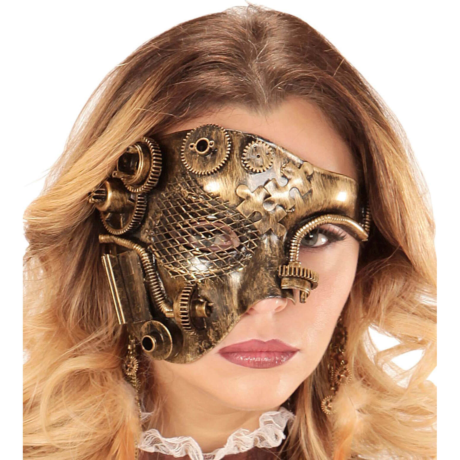 Steampunk Seitenmaske Halbmaske mit Zahnrädern gold – (ARTIKEL/REFERNZ: 8003558096473/WI09647 – Kategorie/Suche: – Hersteller: Widmann S.r.l.)