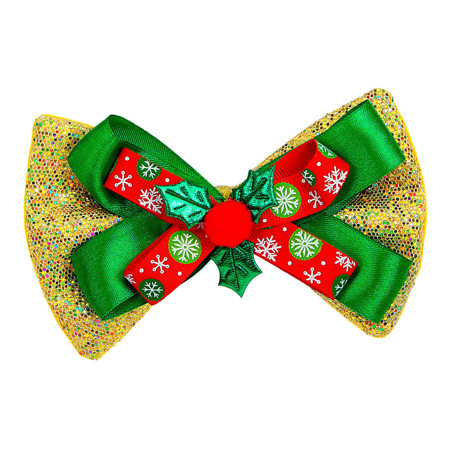 Weihnachts Deko Fliege mit Schleife Glitzer und rotem Dekor gold-grün