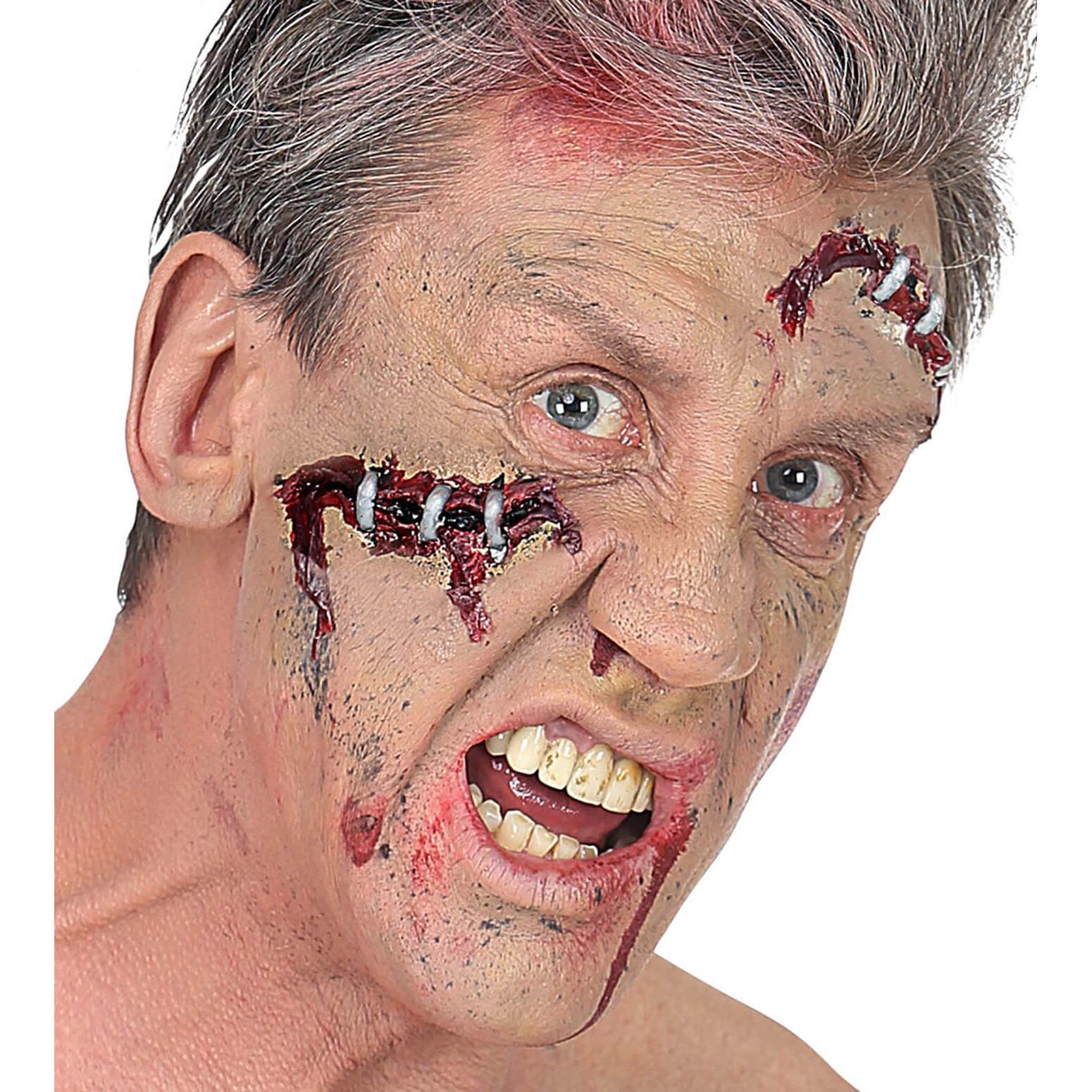 Zombie Wunden Set Latex Partyqualität geklammerte Wunden haut-rot