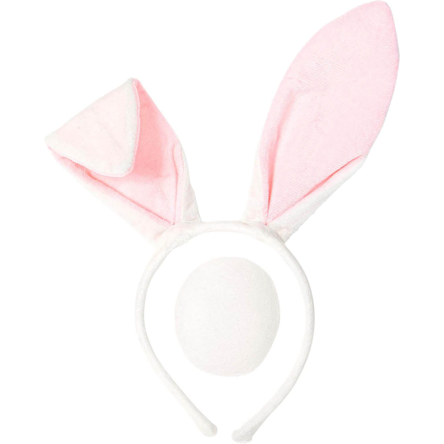 Hasen Haarreif mit Ohren+Schwanz Set Deluxe weiß-rosa