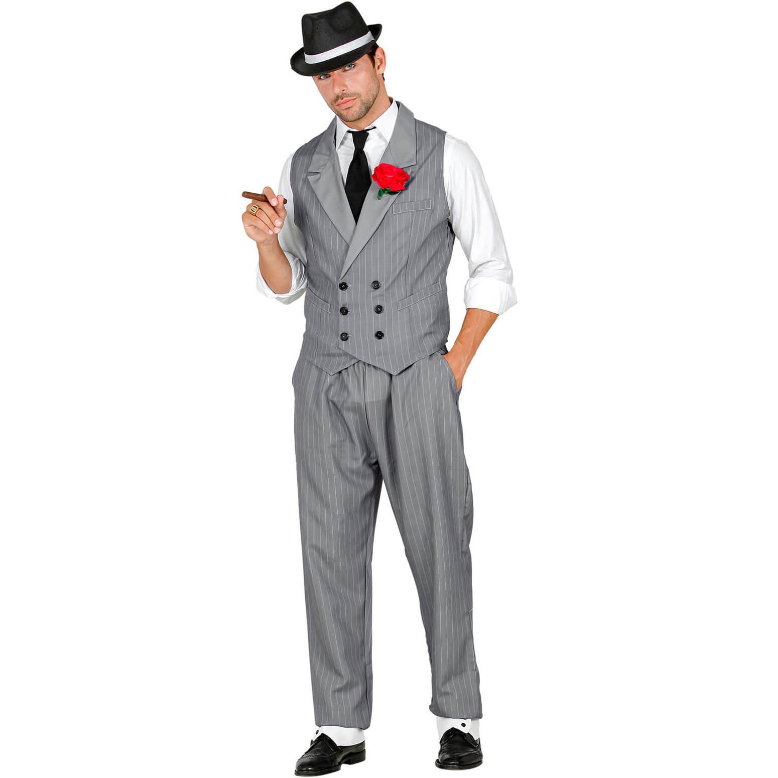 20er Jahre Gangster Kostüm Anzug mit Weste und dünnen Nadelstreifen grau – (ARTIKEL/REFERNZ: 8003558102518/WI10251-8003558102525/WI10252-8003558102532/WI10253-8003558102549/WI10254-8003558102501/WI10250 – Kategorie/Suche: – Hersteller: Widmann S.r.l.)