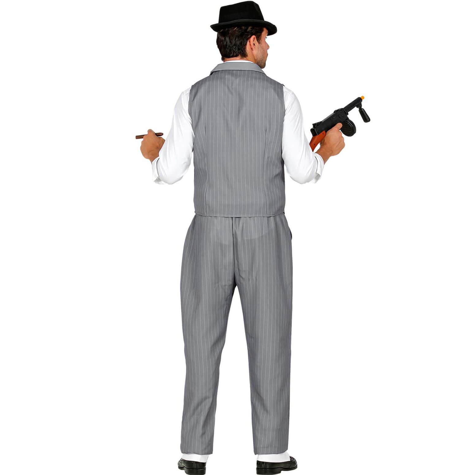 20er Jahre Gangster Kostüm Anzug mit Weste und dünnen Nadelstreifen grau