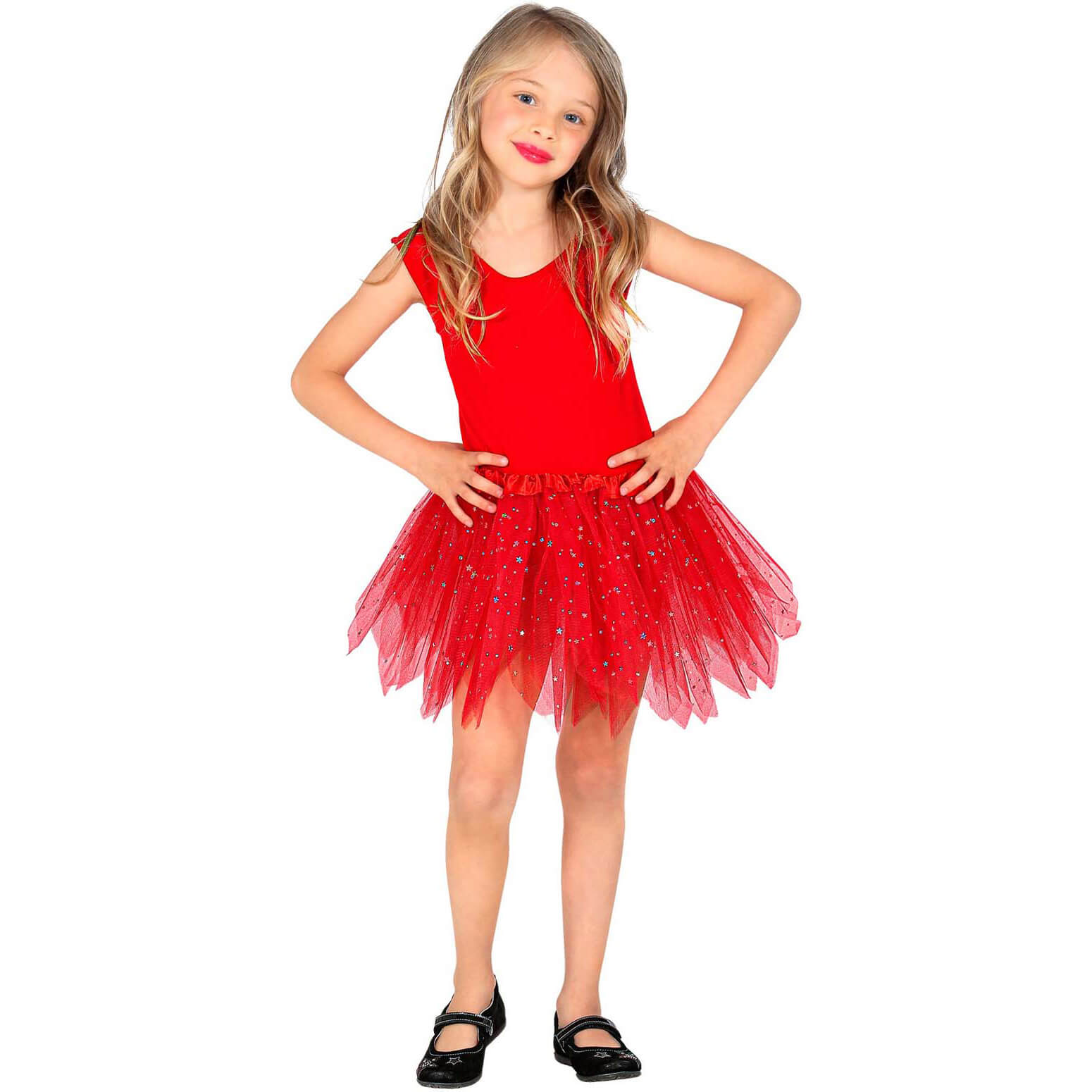 Kinderrock Petticoat kurz Tutu mit silber Glitzer Punkten Zipfelrock einfarbig rot – (ARTIKEL/REFERNZ: 8003558103263/WI10326 – Kategorie/Suche: – Hersteller: Widmann S.r.l.)