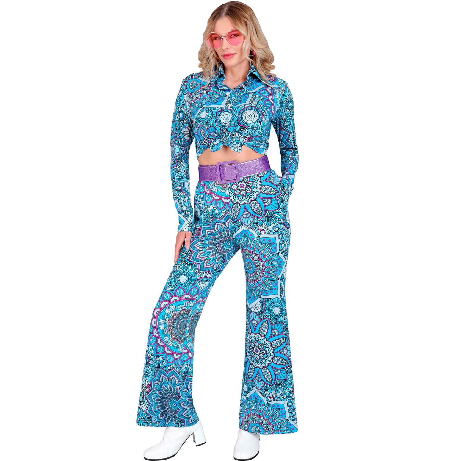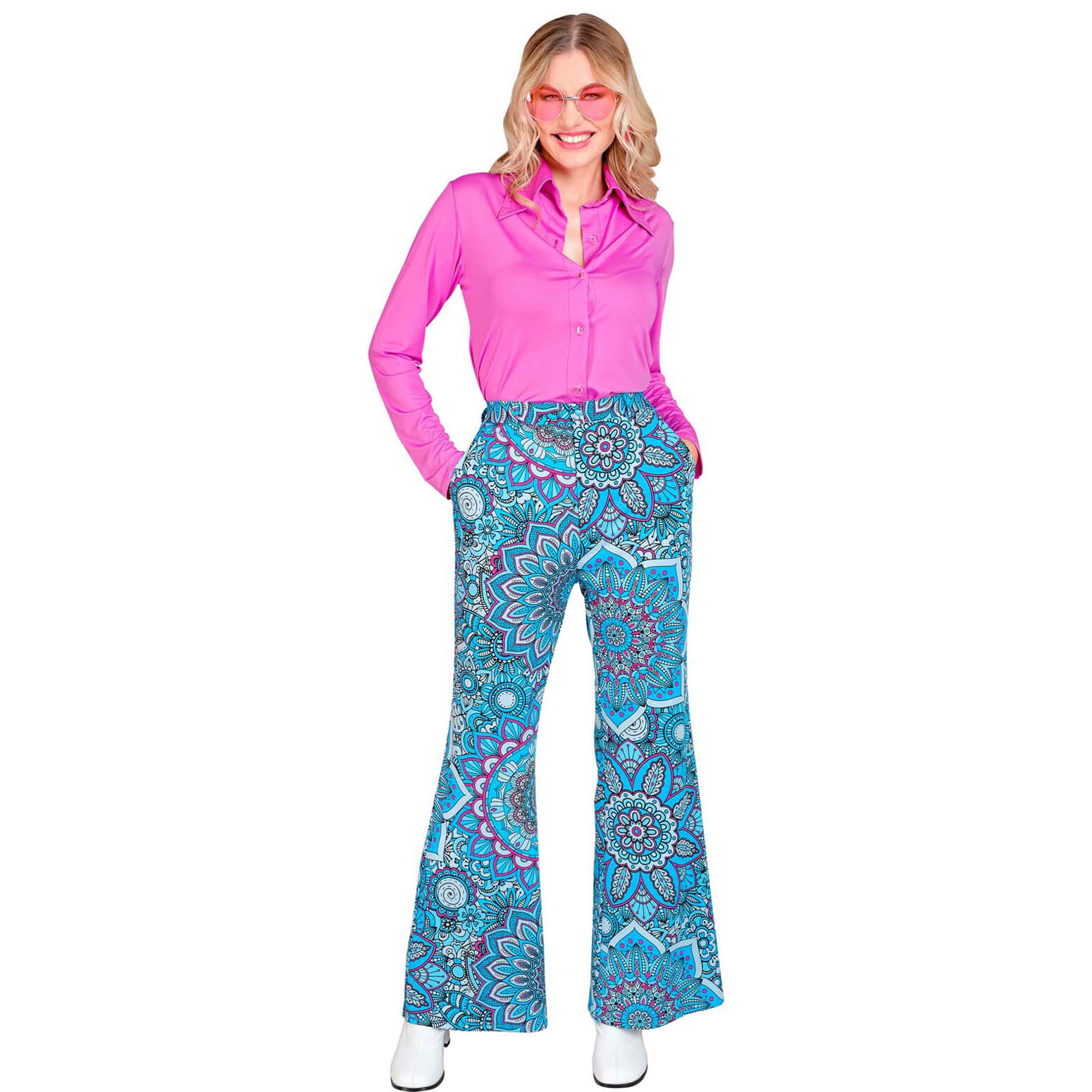 70er Jahre Hippiegirl Schlaghose lang mit Elastan Motiv Mandala blau-pink – (ARTIKEL/REFERNZ: 8003558104451/WI10445-8003558104468/WI10446 – Kategorie/Suche: – Hersteller: Widmann S.r.l.)