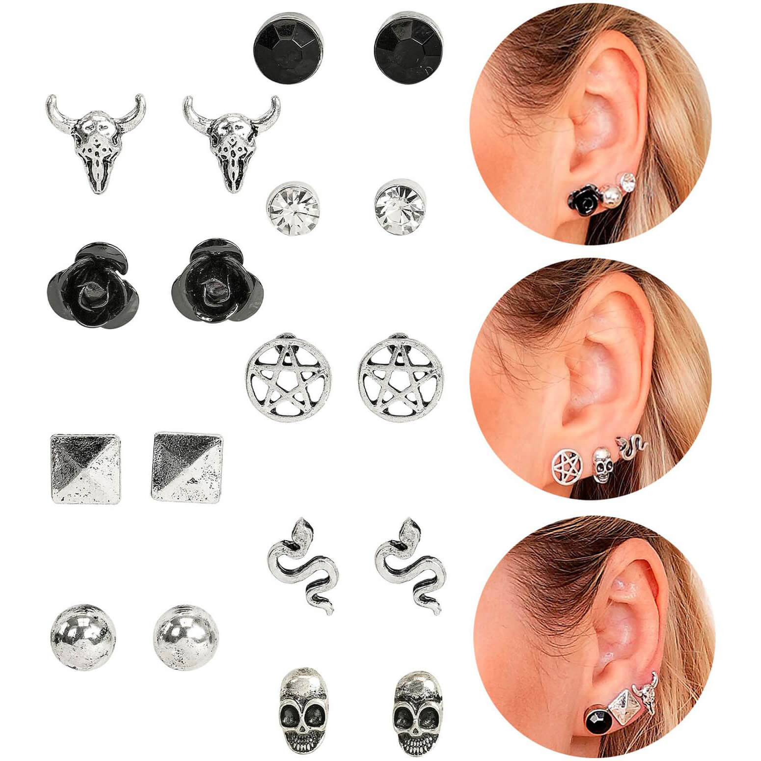 Gruselige Halloween Ohrringe Set verschiedene Motive Stecker für Ohrlöcher silber-schwarz