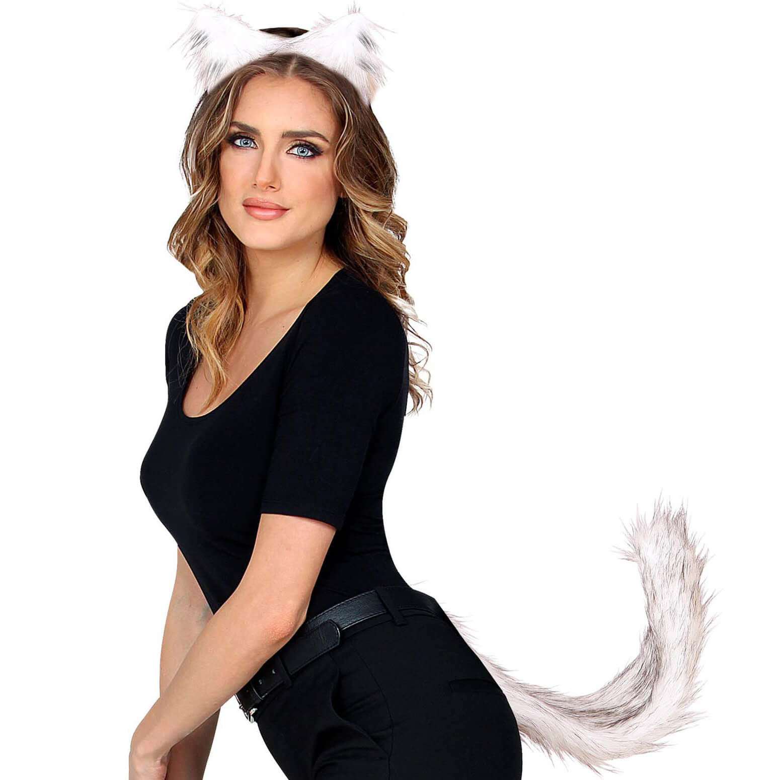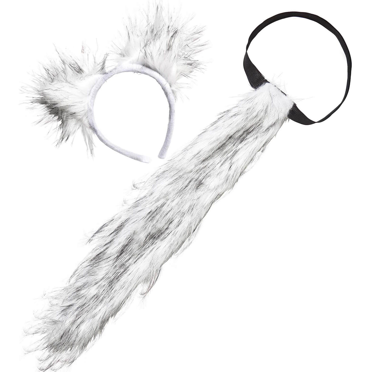 Werwolf Wolf Haarreif mit Ohren+Schwanz Set mit Plüsch Schneewolf Polarfuchs weiß-grau