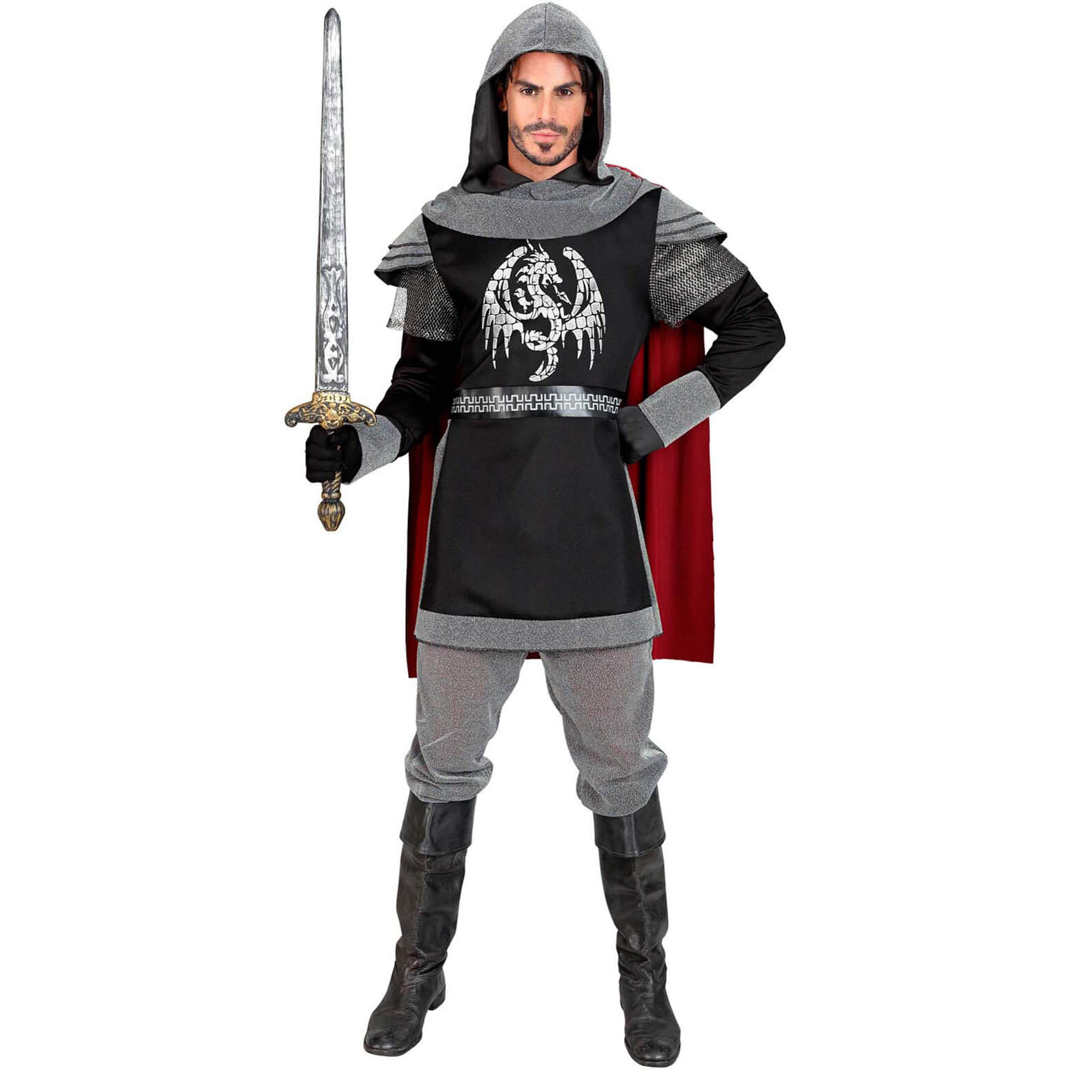 Computerspiel Assassinen Held Kostüm Anzug mit dunkelrotem Cape schwarz-silber – (ARTIKEL/REFERNZ: 8003558119417/WI11941-8003558119424/WI11942-8003558119431/WI11943-8003558119448/WI11944-8003558119400/WI11940 – Kategorie/Suche: Assassins Creed – Hersteller: Widmann S.r.l.)