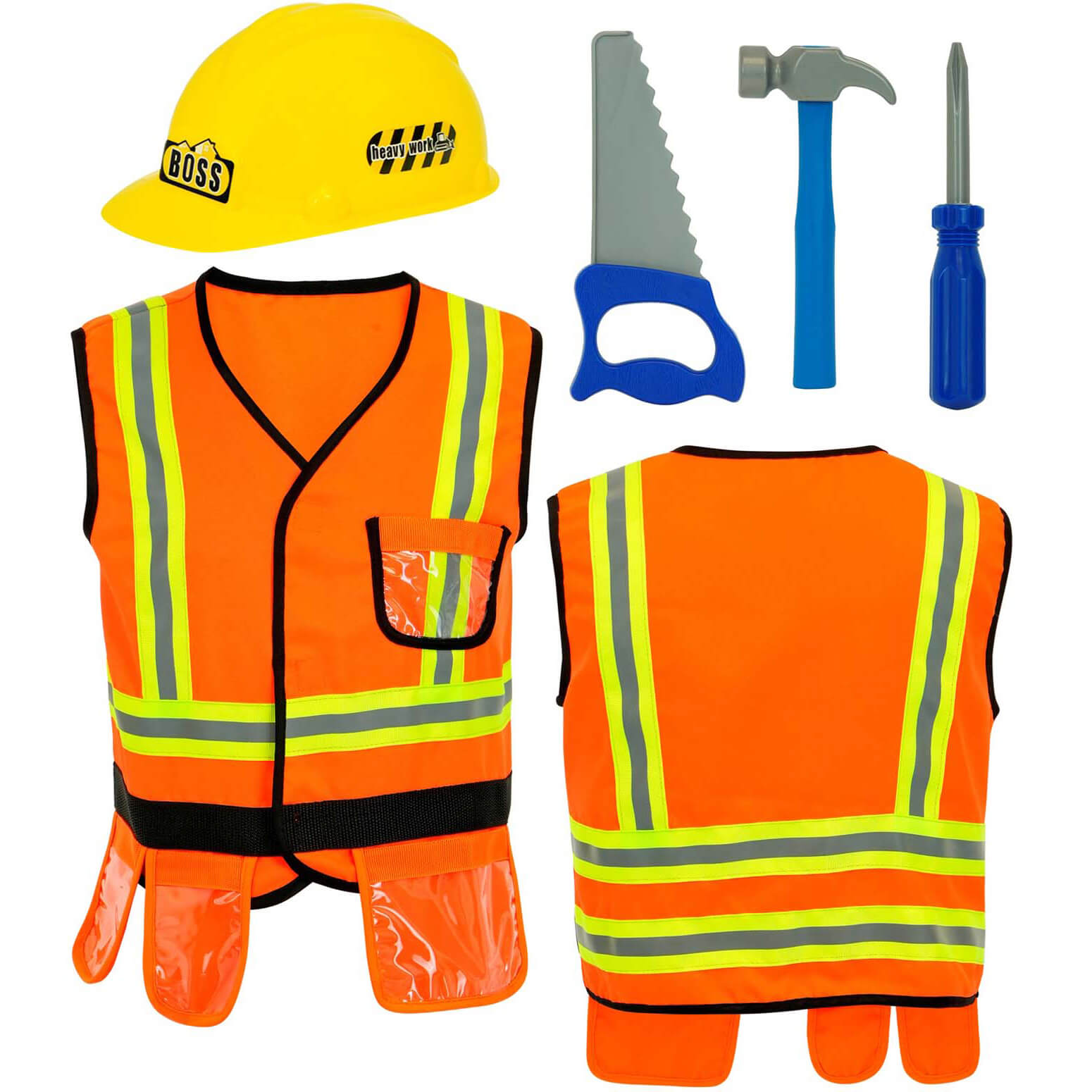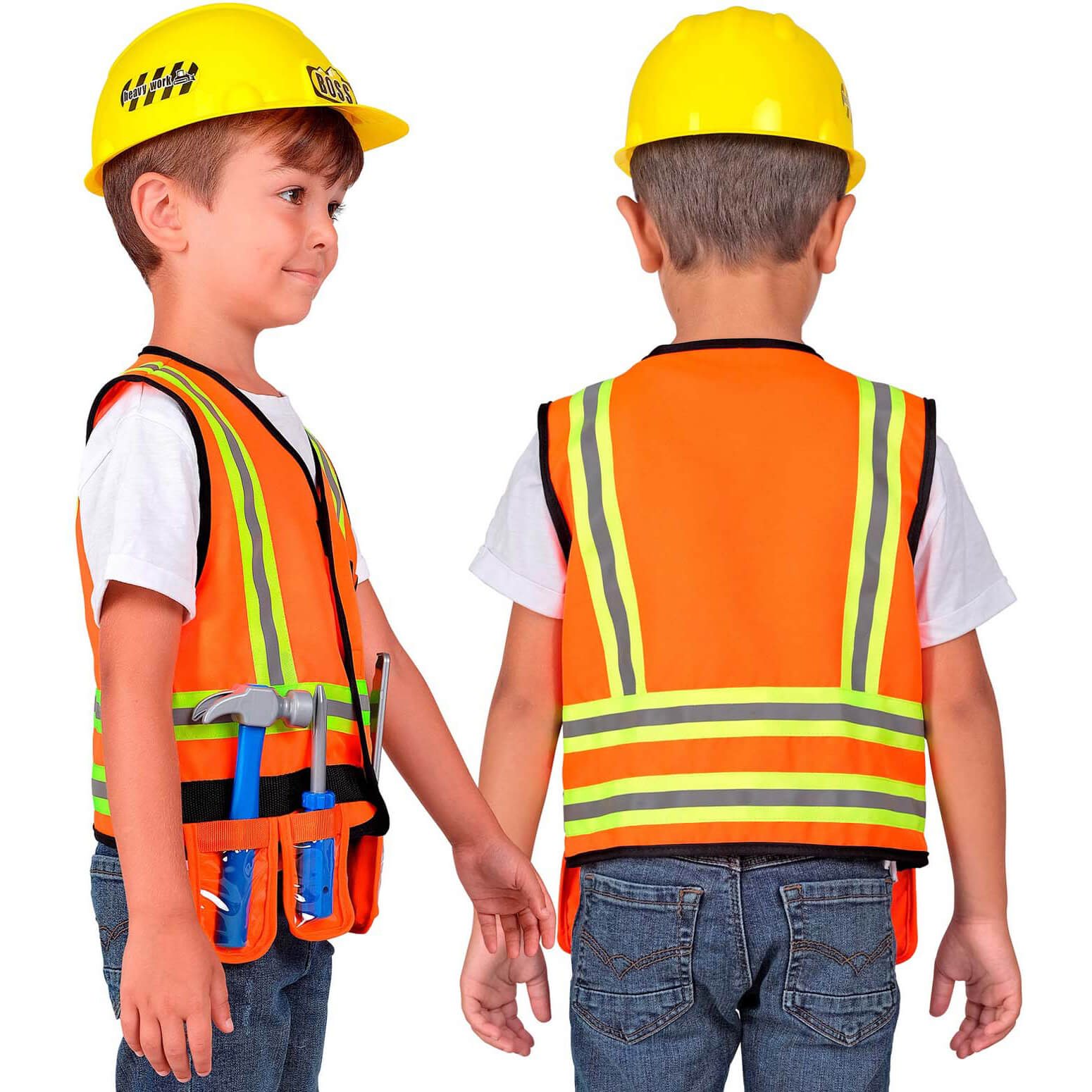 Bauarbeiter Kinderkostüm Teile-Set mit Weste Halm und Werkzeug orange-bunt