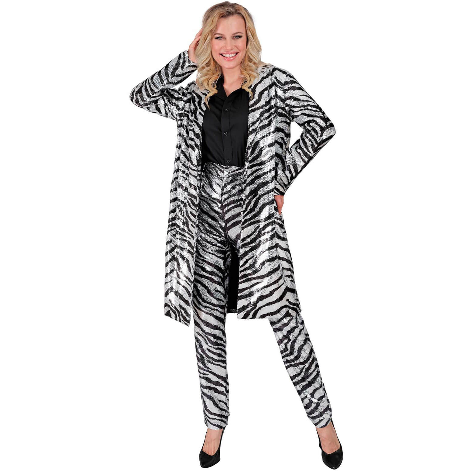 Superstars Pimp Zebra Kostüm Mantel mit Pailletten schwarz-weiß