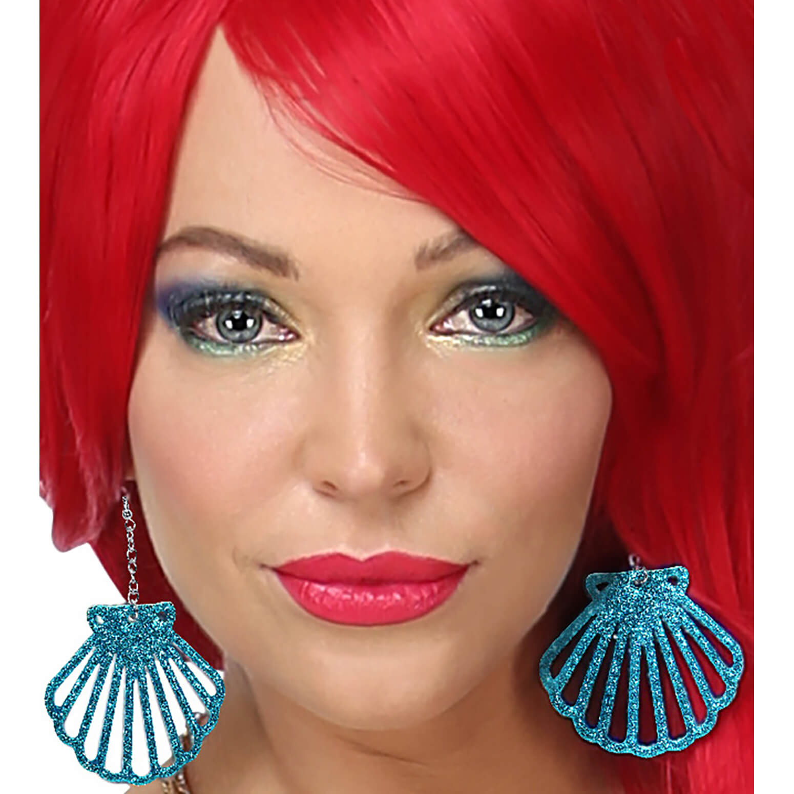 Wassertier Muscheln/Meerjungfrau Ohrringe Ohrhänger für Ohrlöcher filigran mit Glitzer türkis – (ARTIKEL/REFERNZ: 8003558124640/WI12464 – Kategorie/Suche: Disney Arielle die kleine Meerjungfrau Marvel DC Aquaman – Hersteller: Widmann S.r.l.)