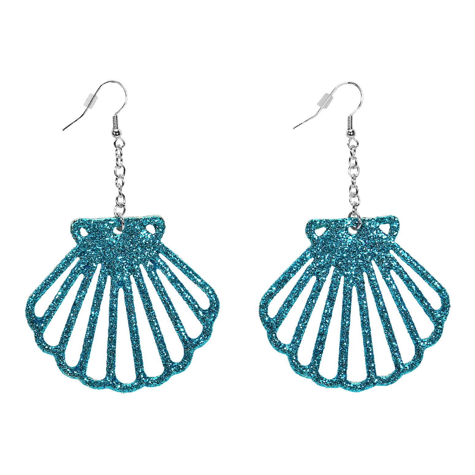 Wassertier Muscheln / Meerjungfrau Ohrringe Ohrhänger für Ohrlöcher filigran mit Glitzer türkis
