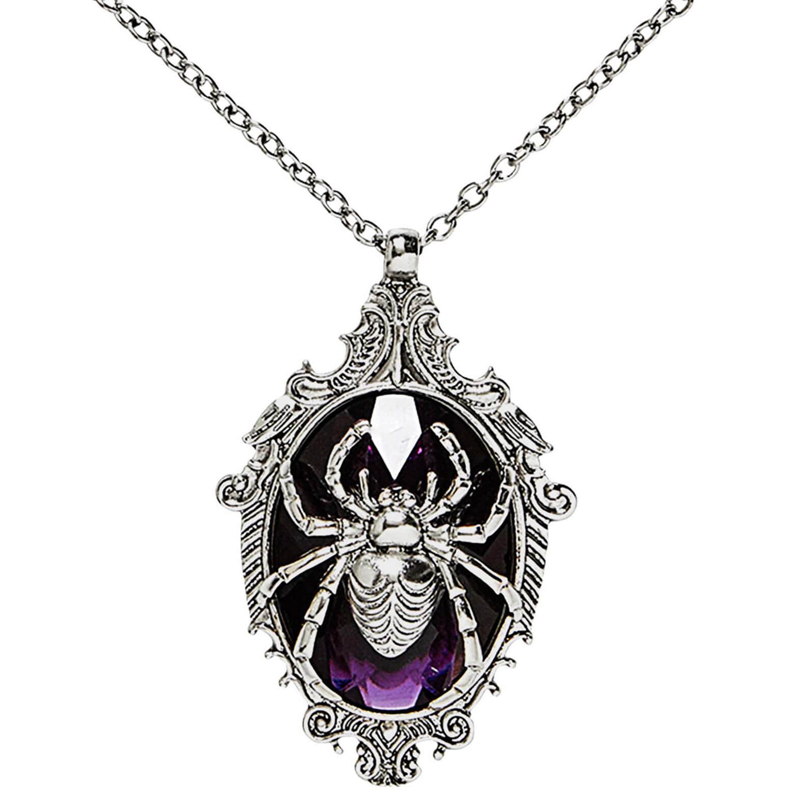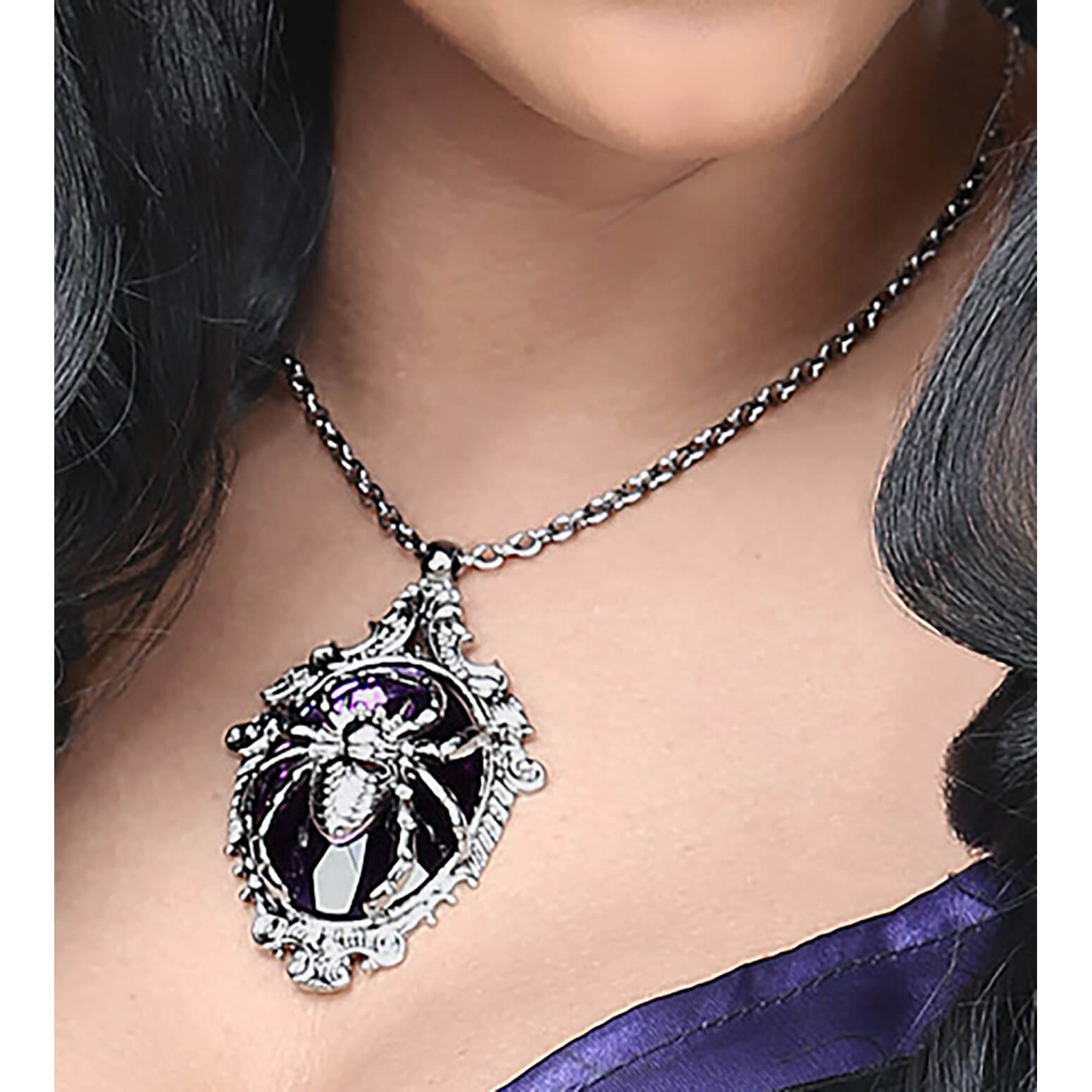 Spinne Halskette mit Anhänger geformte Spinne auf Amulett elegant silber-lila – (ARTIKEL/REFERNZ: 8003558124664/WI12466 – Kategorie/Suche: – Hersteller: Widmann S.r.l.)
