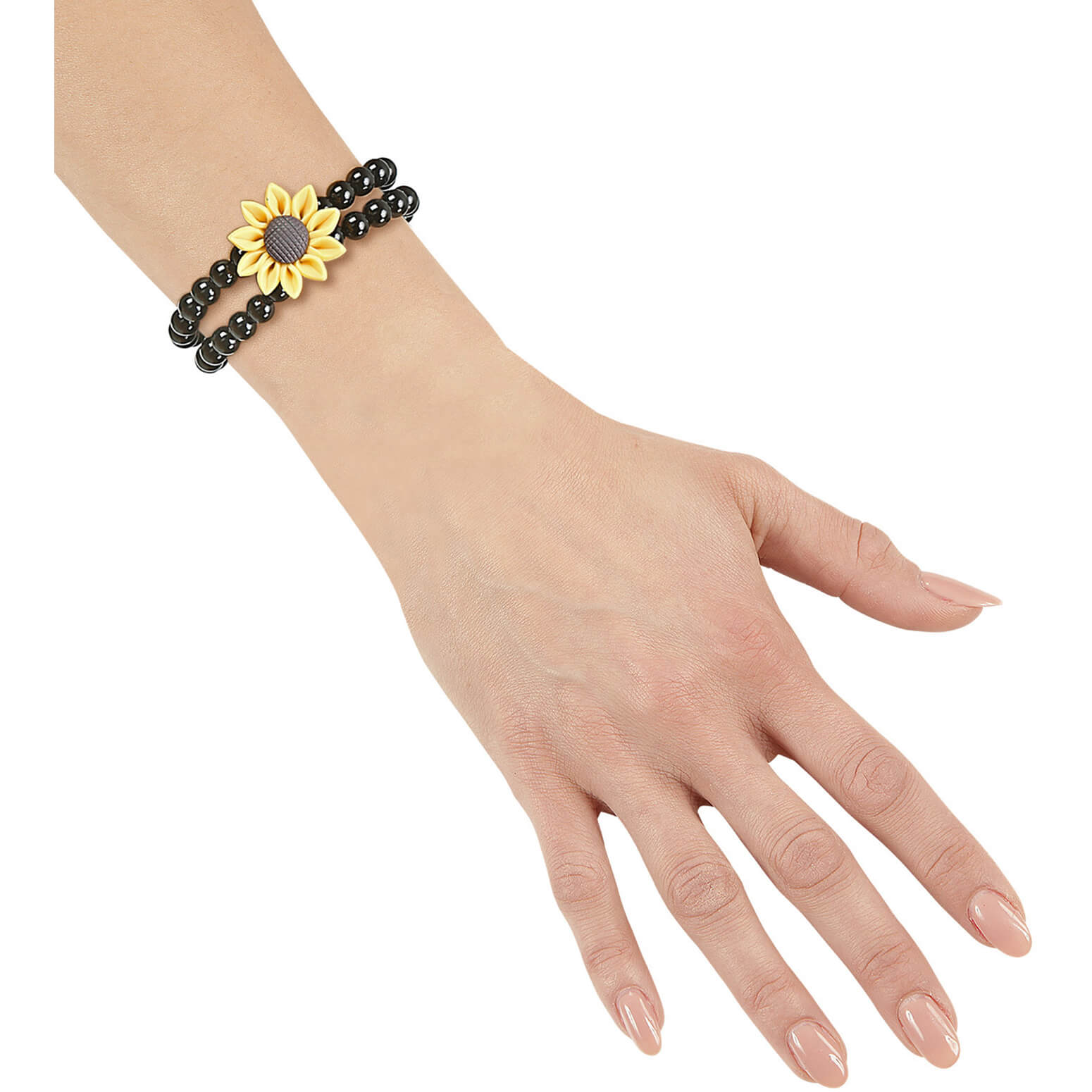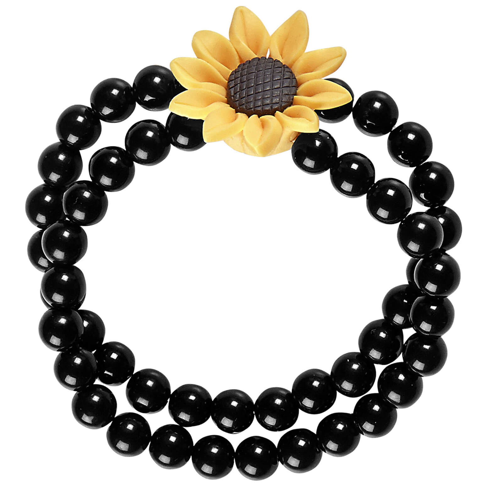 Blumen Sonnenblumen Perlenarmband aus Kusntstoff schwarz-gelb