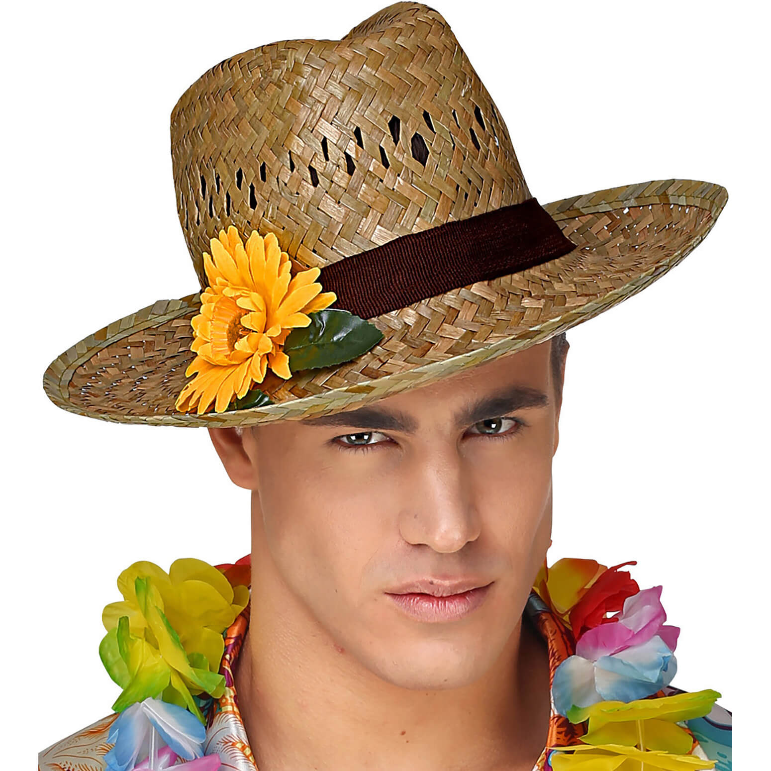 Mexikaner/Hawaiianer Strohhut Fedorahut breite Krempe mit gelber Sonnenblume und Band Gärtnerhut beige – (ARTIKEL/REFERNZ: 8003558142323/WI14232 – Kategorie/Suche: – Hersteller: Widmann S.r.l.)