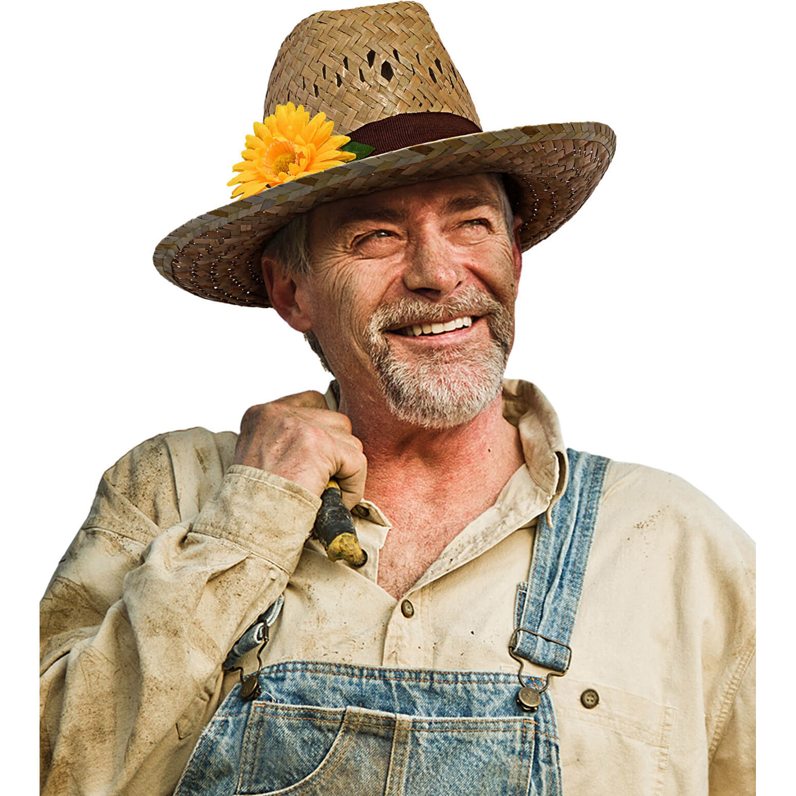 Mexikaner / Hawaiianer Strohhut Fedorahut breite Krempe mit gelber Sonnenblume und Band Gärtnerhut beige