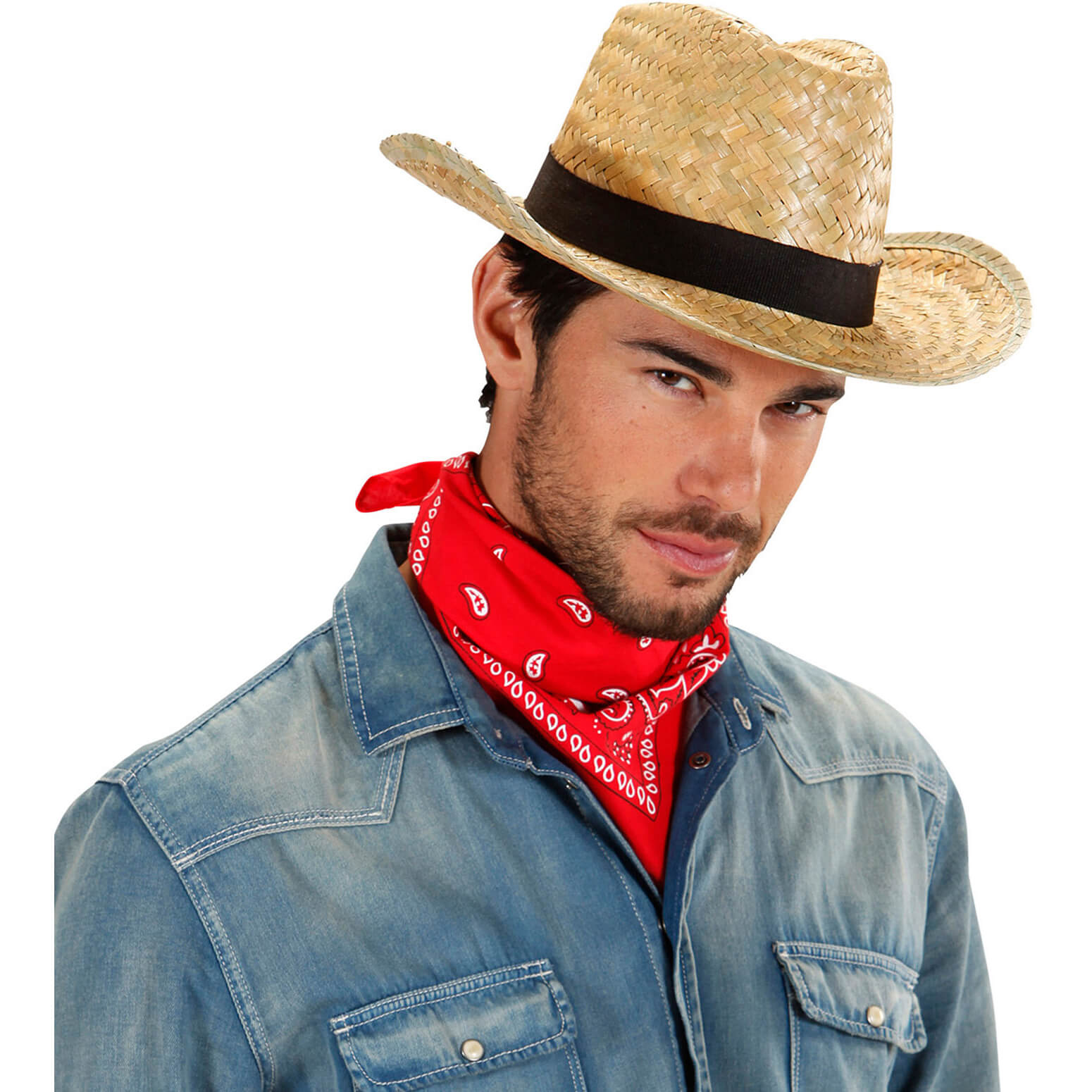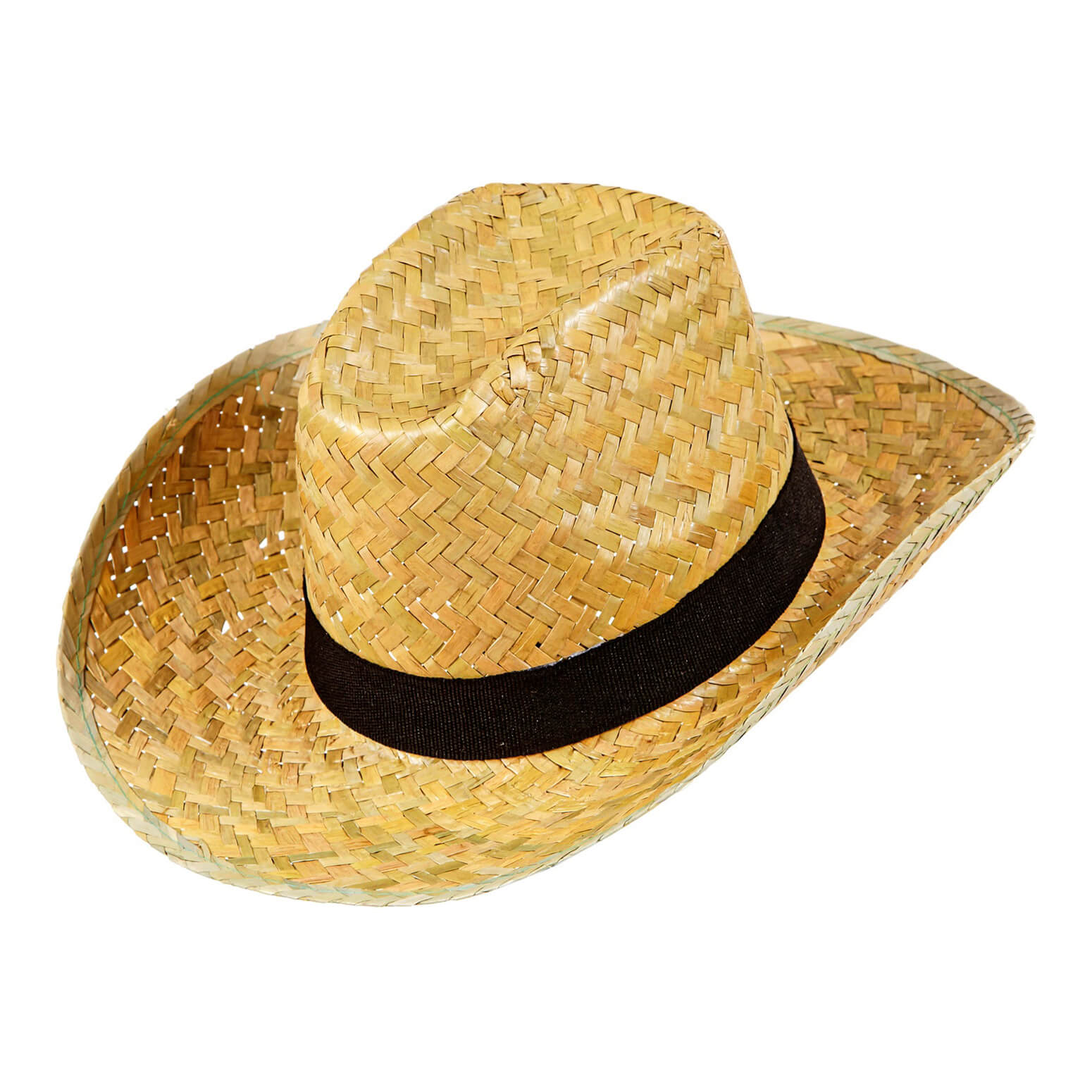 Cowgirl Cowboy Strohhut Cowboyhut mit Band Classic Texas beige-schwarz