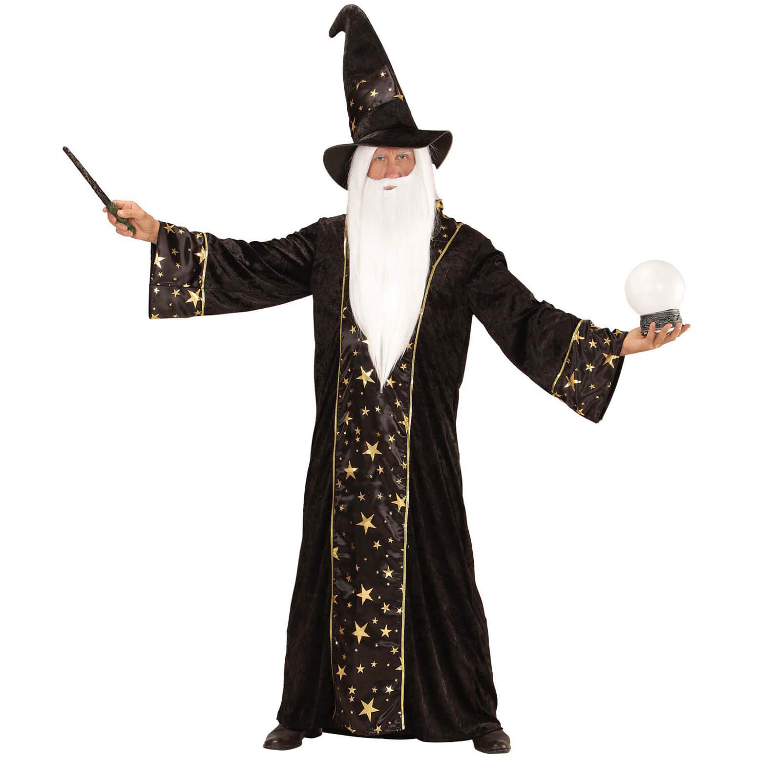 Hexer Zauberer Merlin Kostüm Robe Tunika lang Fantasy Zauberer aus Samt mit Sternen schwarz-gold – (ARTIKEL/REFERNZ: 8003558152223/WI15222 – Kategorie/Suche: Ritter der Tafelrunde heiliger Gral – Hersteller: Widmann S.r.l.)