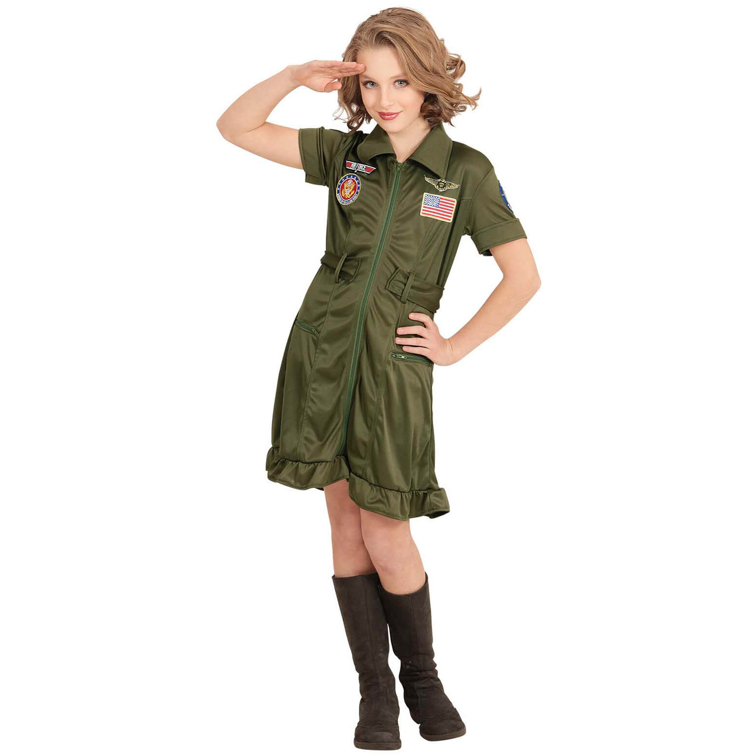 Jetpilotin Kinderkostüm Kleid kurz Kampfjetpilotin dunkelgrün