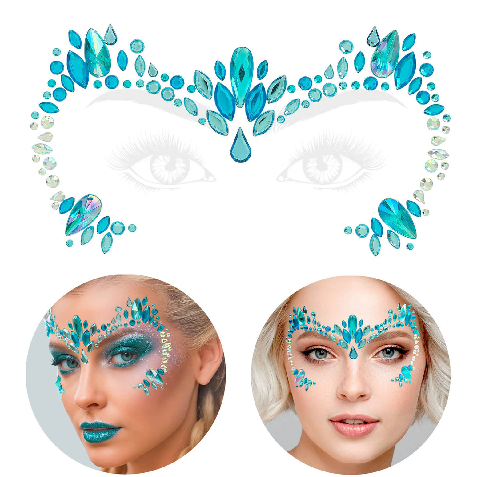 Eisprinzessin Schmucksteine Augen Set auf Folie selbstklebend EISKÖNIGIN türkis-silber
