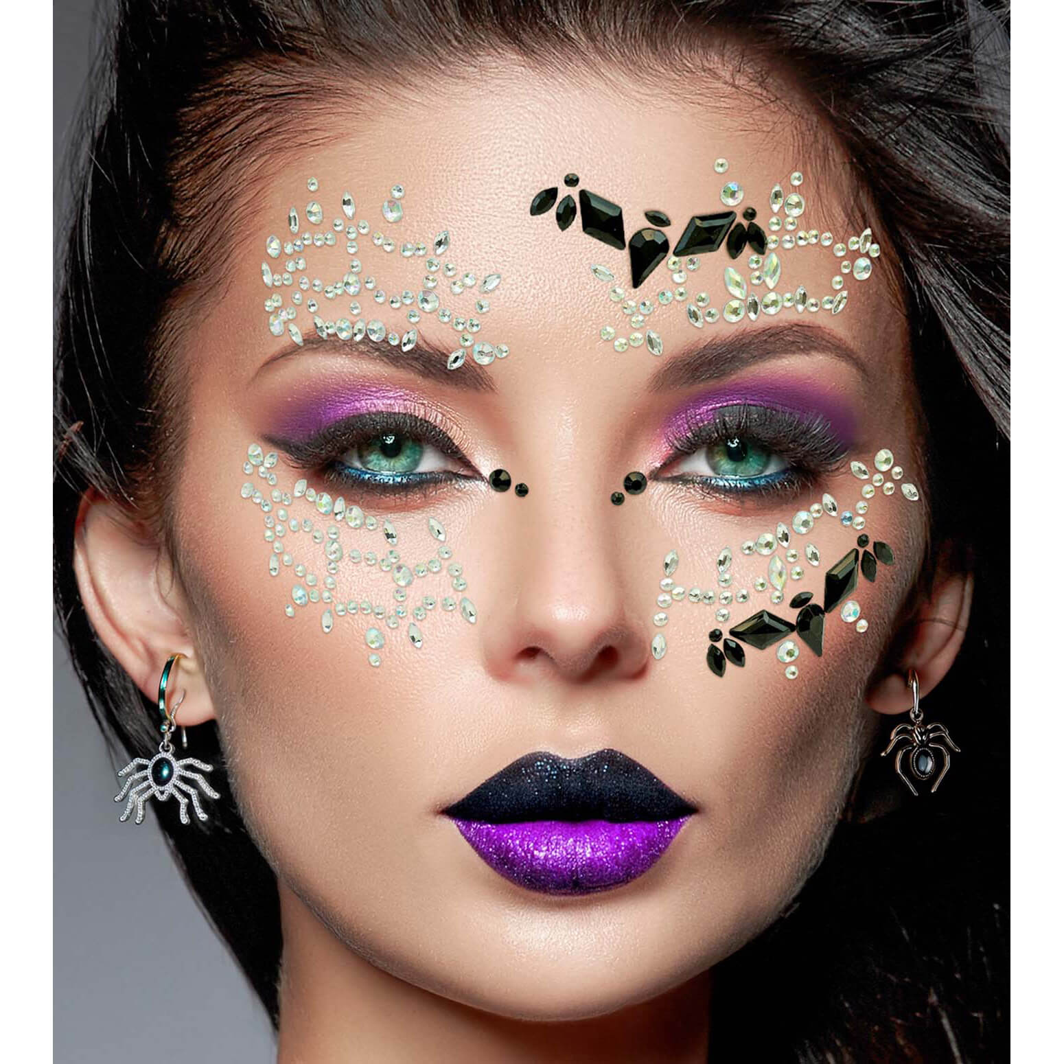 Spinnennetz Schmucksteine Augen Set auf Folie selbstklebend mit Fledermäusen FLEDERMAUS silber-schwarz – (ARTIKEL/REFERNZ: 8003558156030/WI15603 – Kategorie/Suche: – Hersteller: Widmann S.r.l.)