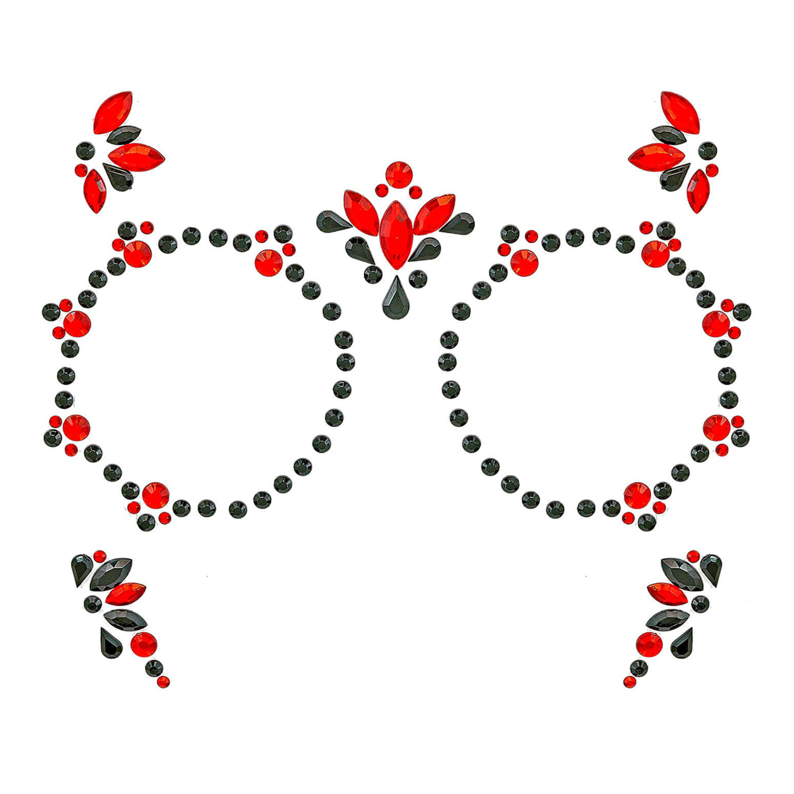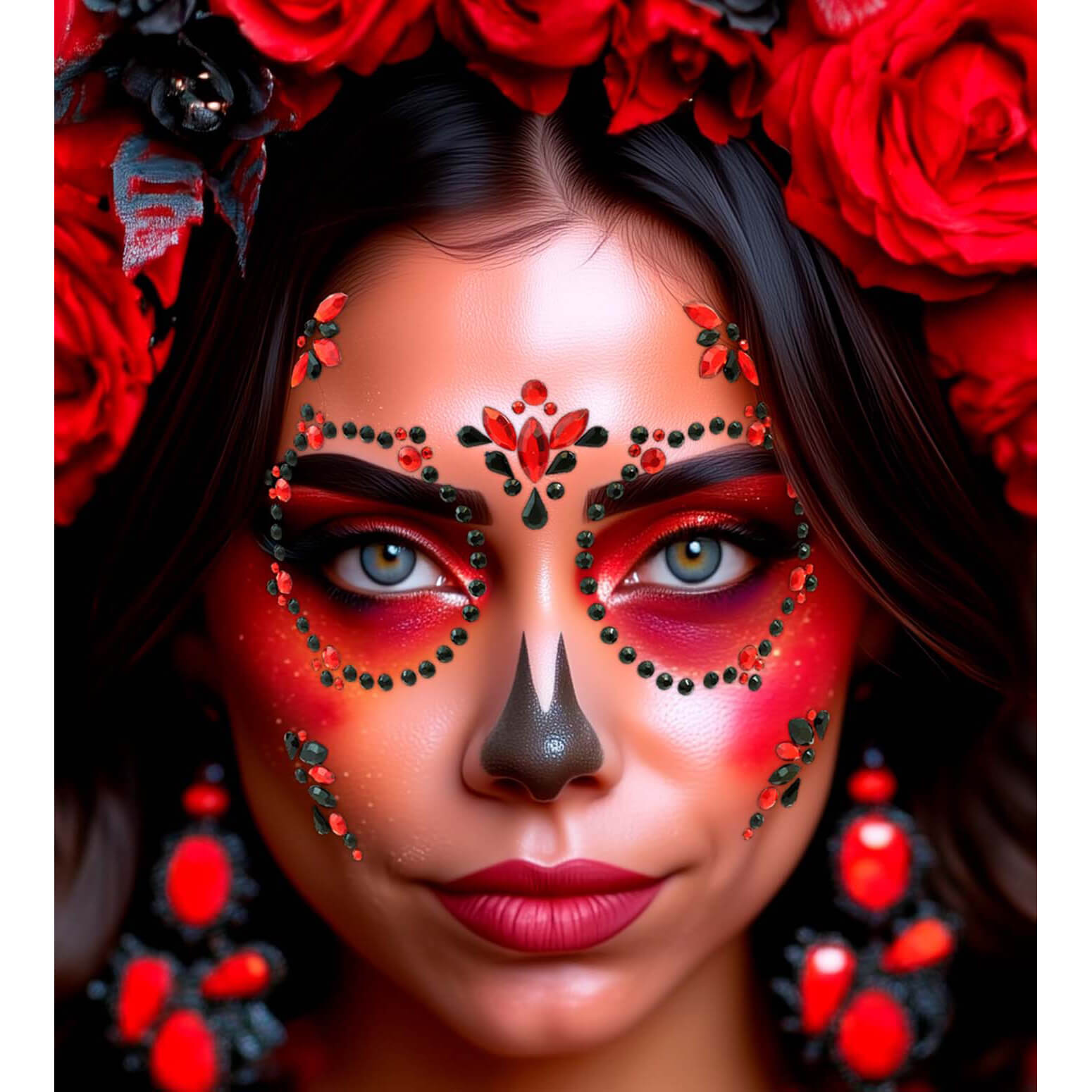 Schädel bleich Schmucksteine Gesicht Set auf Folie selbstklebend DIA DE LOS MUERTOS ROT UND SCHWARZ rot-schwarz