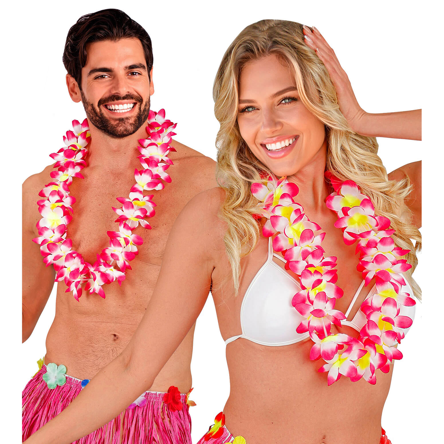 Hawaii/Blumen Halskette Hawaiikette Lei Deluxe pink-weiß – (ARTIKEL/REFERNZ: 8003558163007/WI16300 – Kategorie/Suche: – Hersteller: Widmann S.r.l.)