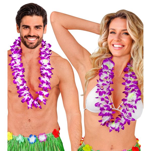Hawaii/Blumen Halskette Hawaiikette Lei Deluxe lila-weiß – (ARTIKEL/REFERNZ: 8003558163045/WI16304 – Kategorie/Suche: – Hersteller: Widmann S.r.l.)