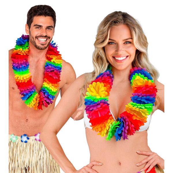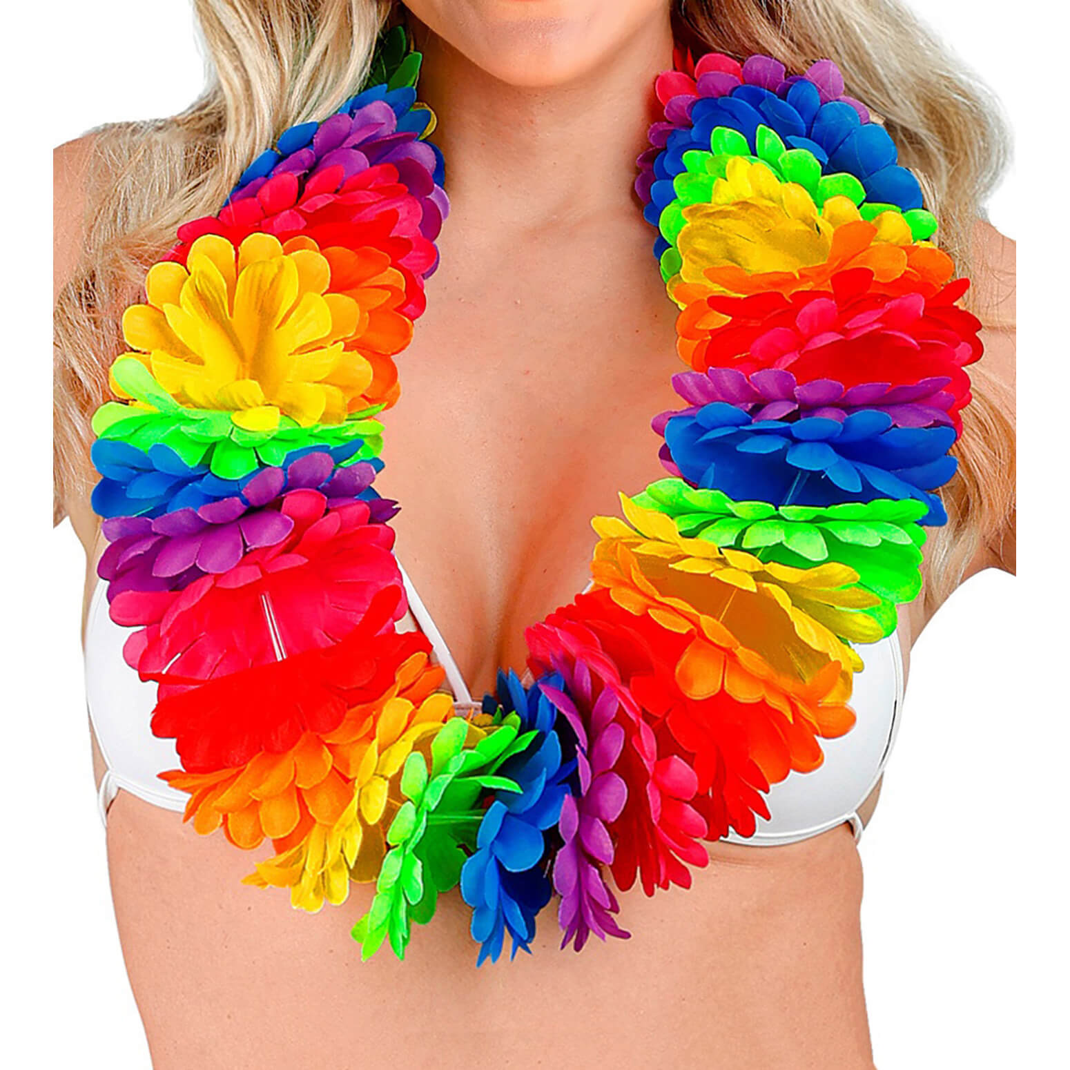Hawaii/Blumen Halskette Hawaiikette Lei Deluxe in regenbogenfarben bunt – (ARTIKEL/REFERNZ: 8003558163175/WI16317 – Kategorie/Suche: – Hersteller: Widmann S.r.l.)