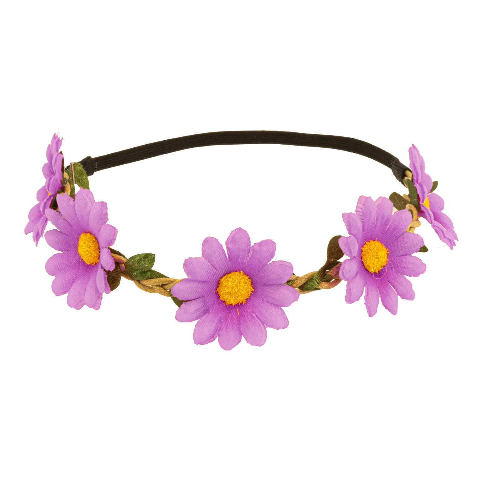 Blumen Margeriten Haarkranz Blumenkranz Stirnband Haarband mit Blüten lila-gelb