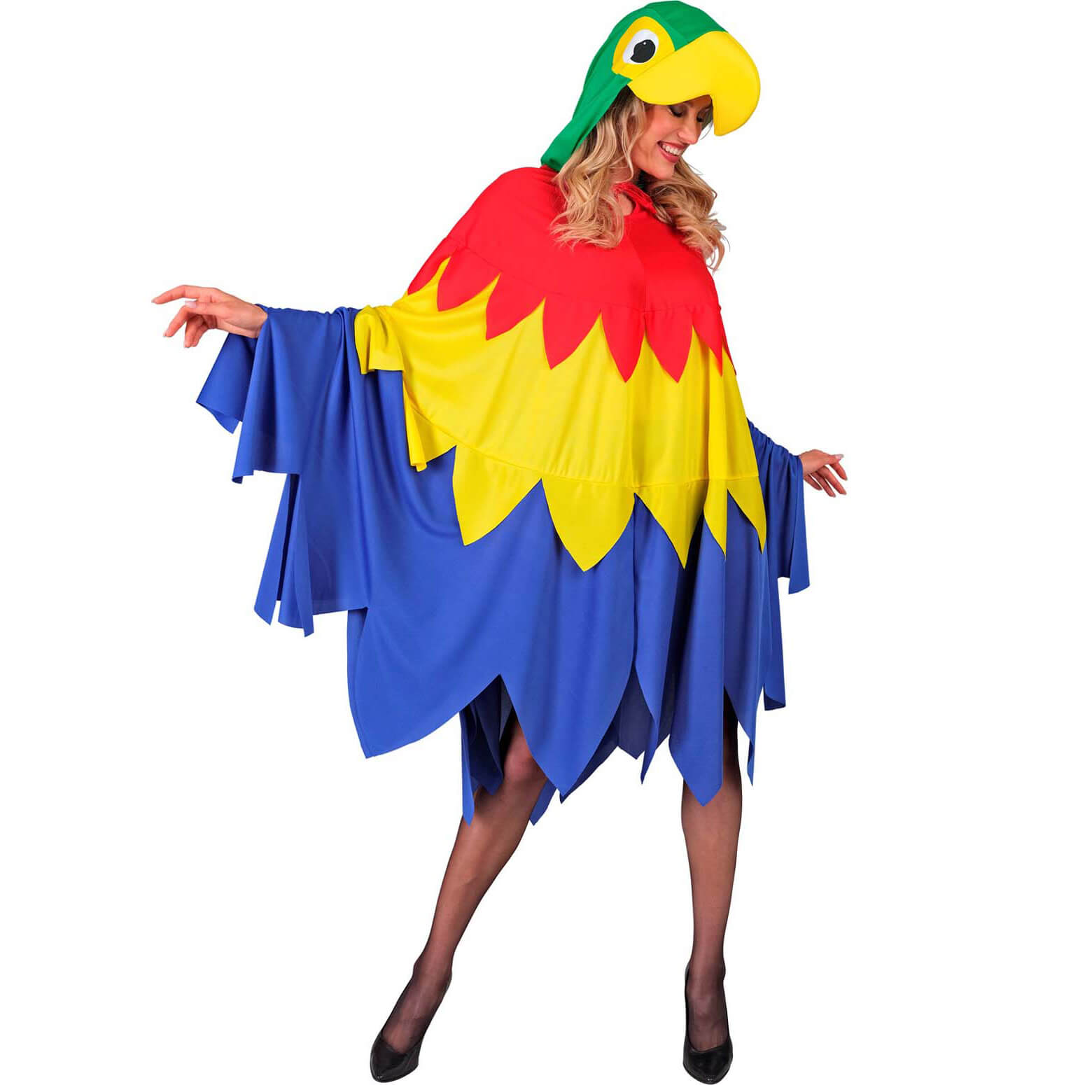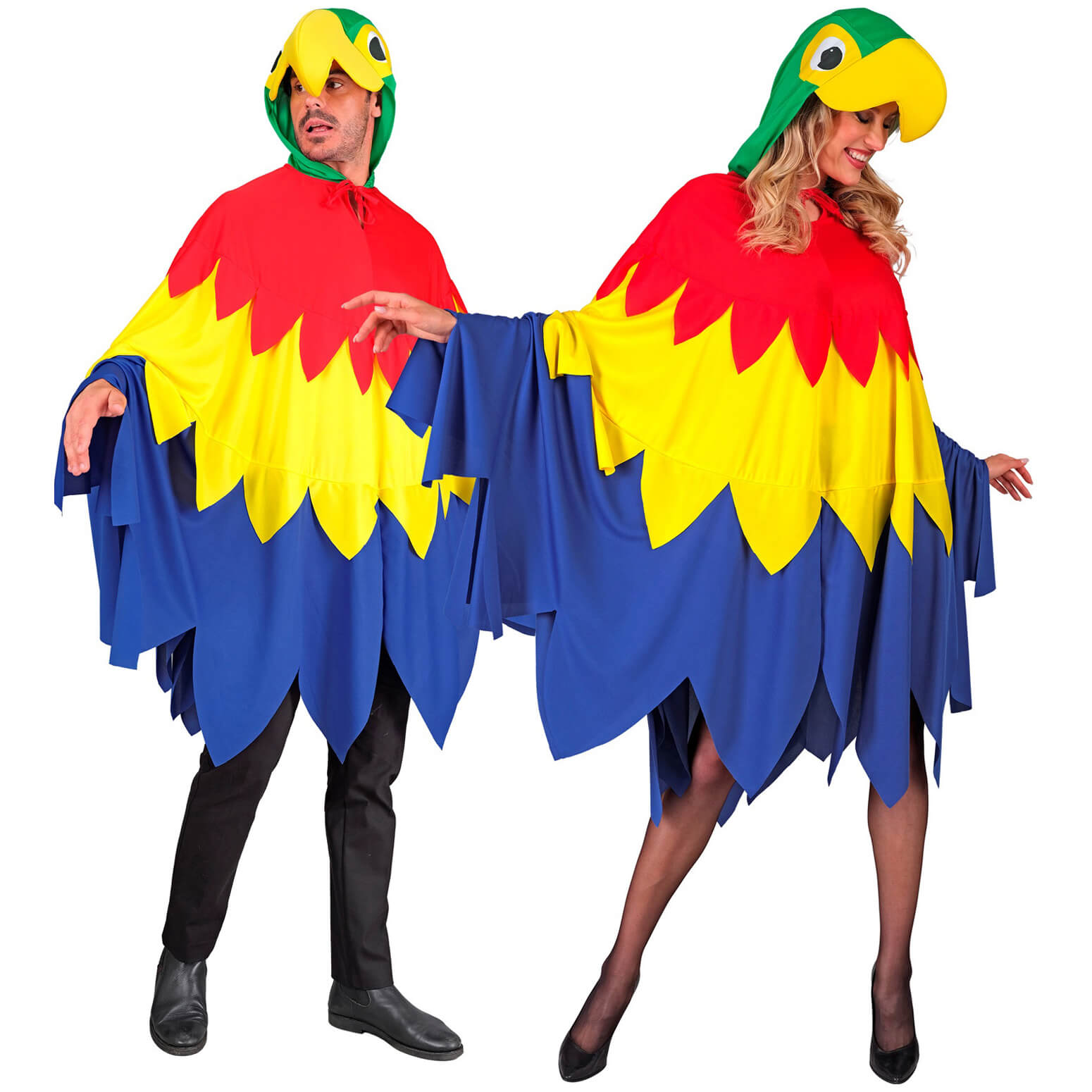 Vogel Papagei Kostüm Poncho Überwurf mit Kapuze bunt