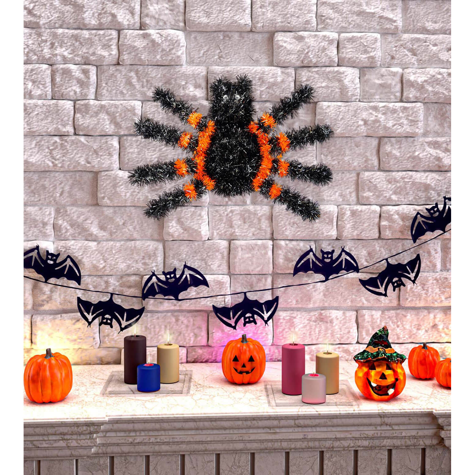 Spinne Dekohängeartikel Lametta Drahtfigur mit Kunststofffäden 34x23cm schwarz-orange – (ARTIKEL/REFERNZ: 8003558170838/WI17083 – Kategorie/Suche: – Hersteller: Widmann S.r.l.)