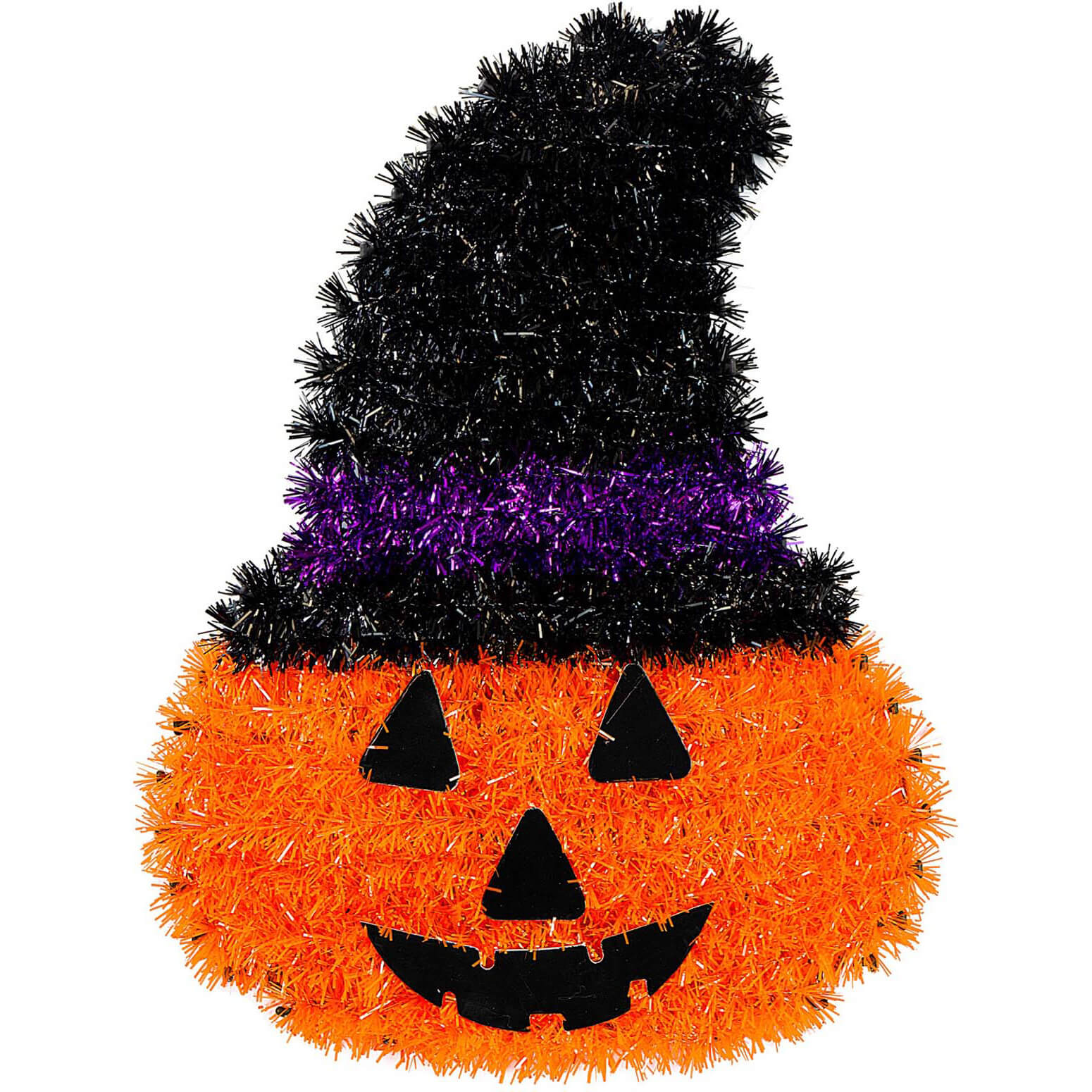 Kürbis Dekohängeartikel Lametta mit Hexenhut Drahtfigur mit Kunststofffäden 39x29cm orange-schwarz – (ARTIKEL/REFERNZ: 8003558170845/WI17084 – Kategorie/Suche: – Hersteller: Widmann S.r.l.)