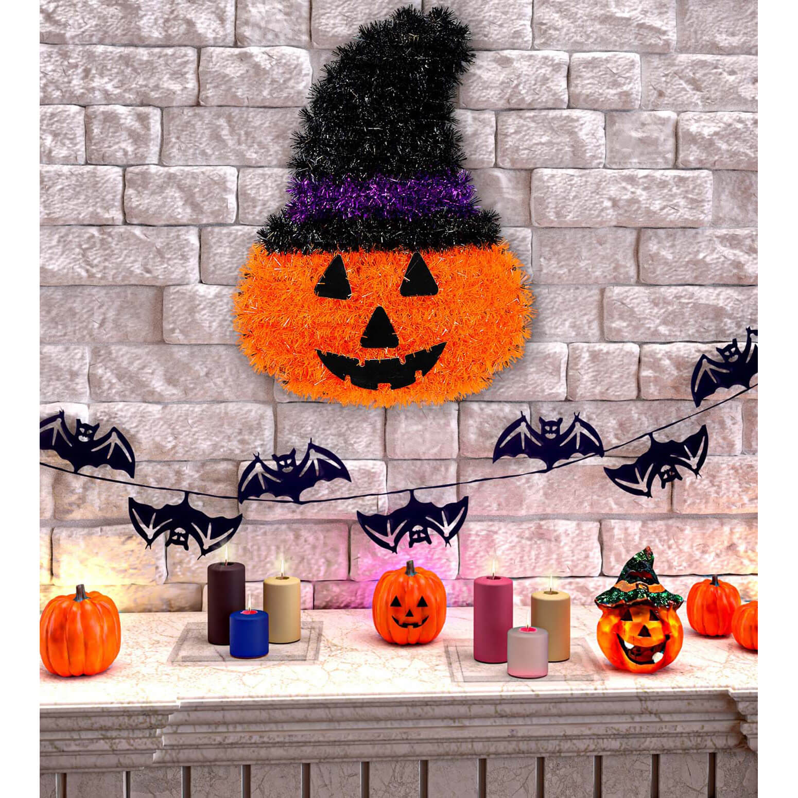 Kürbis Dekohängeartikel Lametta mit Hexenhut Drahtfigur mit Kunststofffäden 39x29cm orange-schwarz