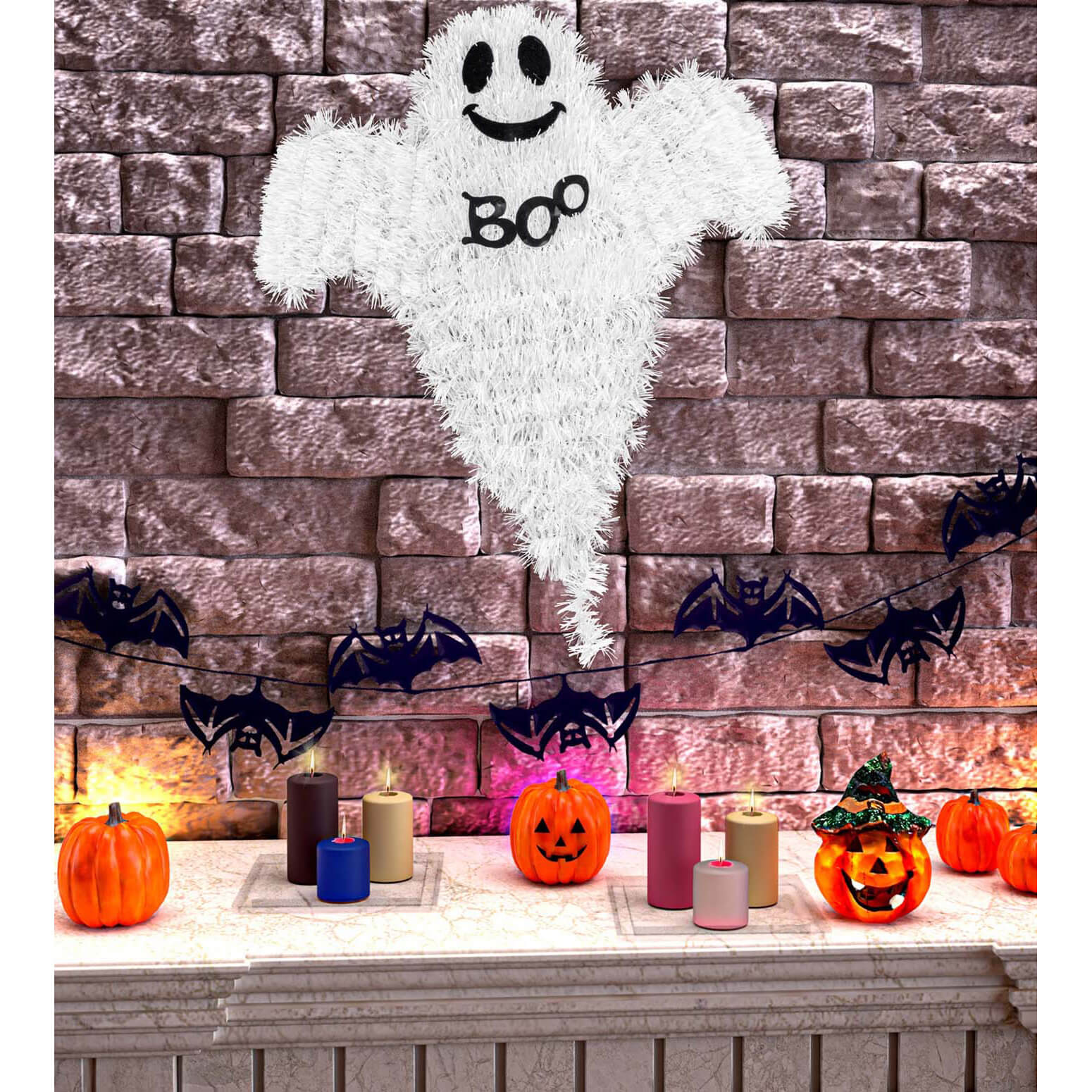 Geist Dekohängeartikel Lametta Drahtfigur mit Kunststofffäden 32x37cm BOO weiß-schwarz