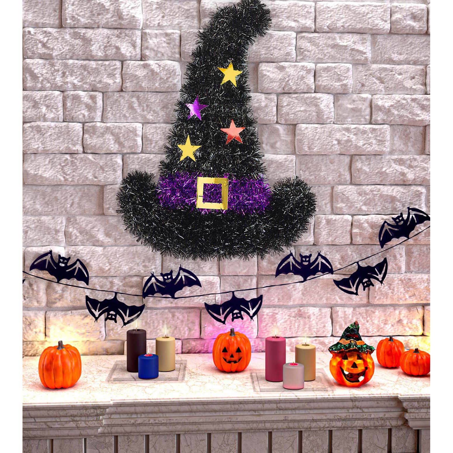 Hexe Dekohängeartikel Lametta Hexenhut mit Sternen Drahtfigur mit Kunststofffäden 41x30cm schwarz-lila