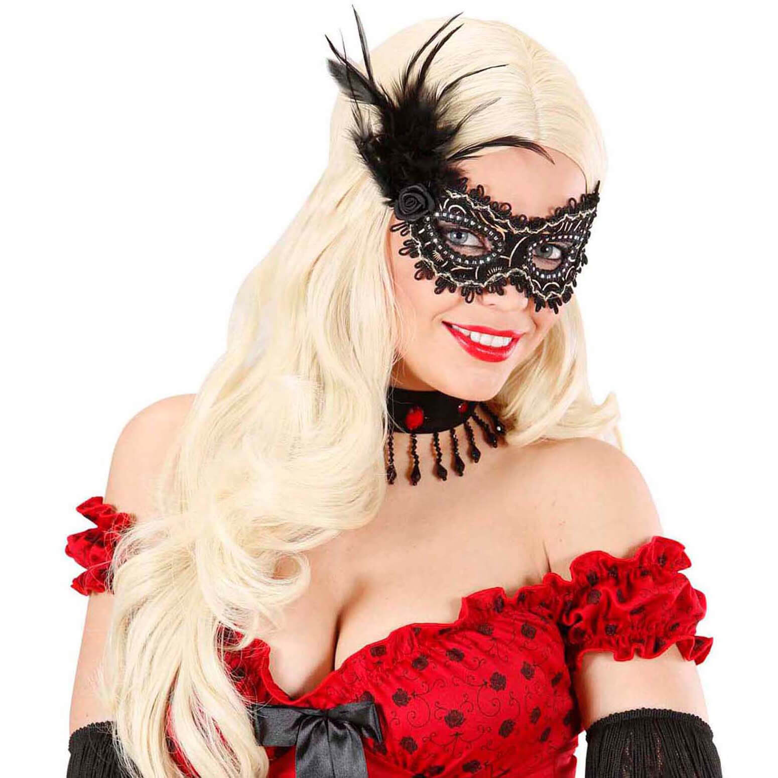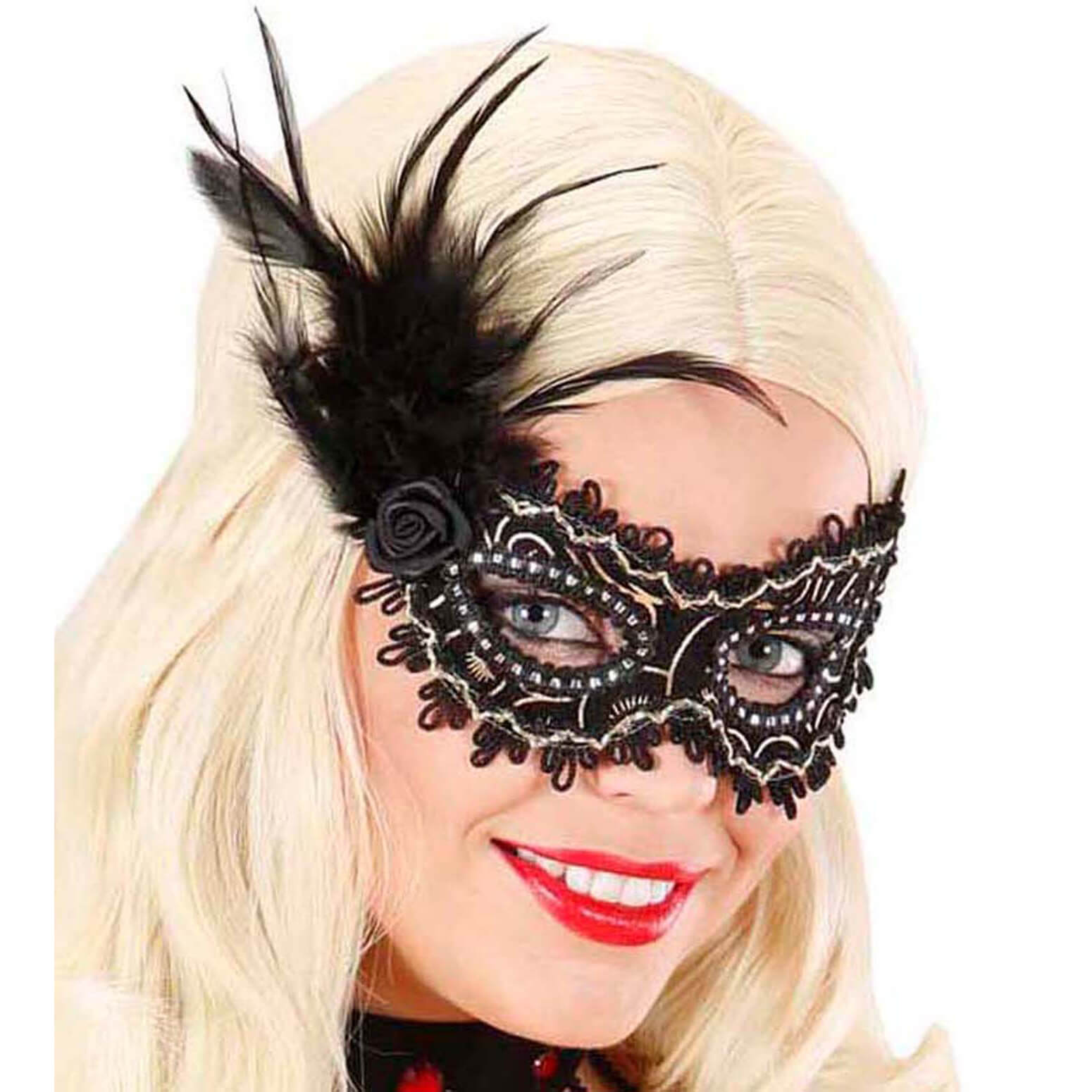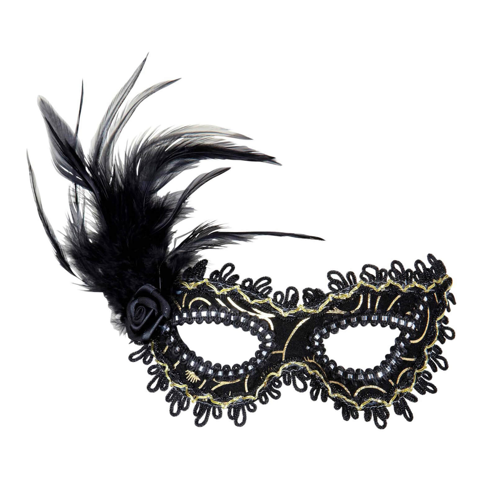 Edle venezianische Dominomaske mit Federn Rose und Goldeinsätzen schwarz-gold – (ARTIKEL/REFERNZ: 8003558178902/WI1789N – Kategorie/Suche: – Hersteller: Widmann S.r.l.)