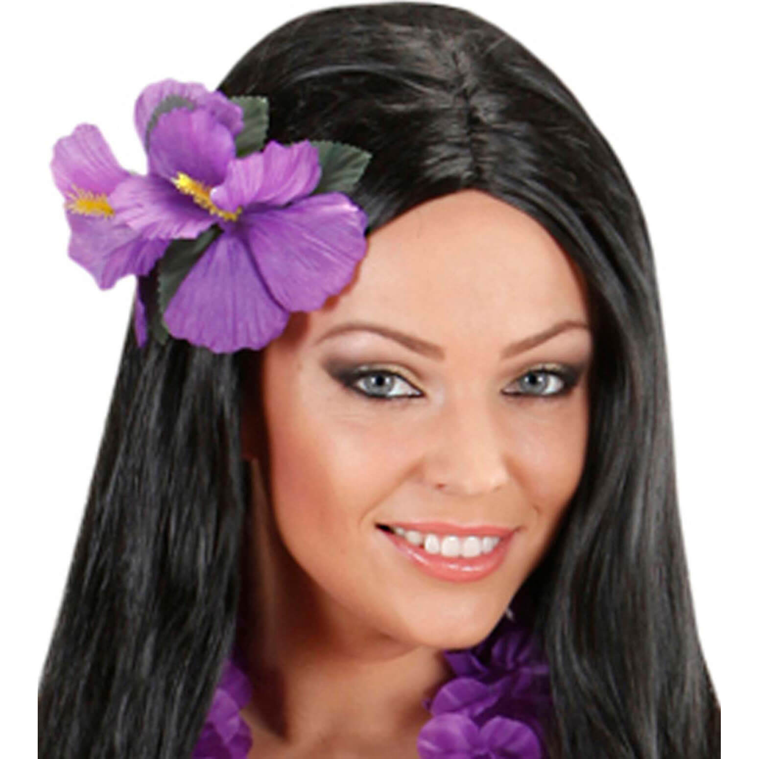 Hawaii/Blumen Haarclip mit Blume tropische Textilblume Hibuscus lila – (ARTIKEL/REFERNZ: 8003558184309/WI1843V – Kategorie/Suche: Haarklammer Haarspange – Hersteller: Widmann S.r.l.)
