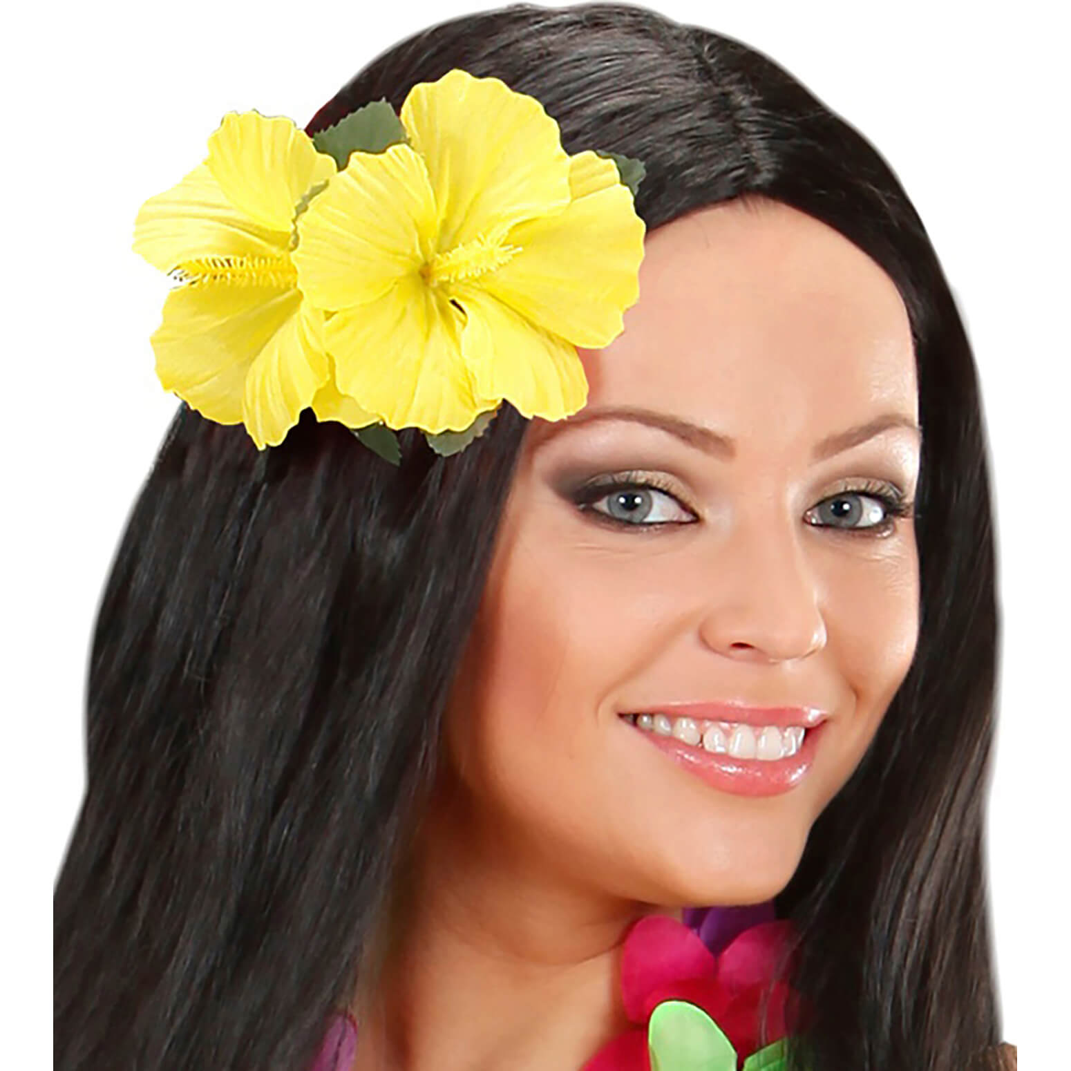 Hawaii/Blumen Haarclip mit Blume tropische Textilblume Hibuscus gelb – (ARTIKEL/REFERNZ: 8003558184606/WI1846G – Kategorie/Suche: Haarklammer Haarspange – Hersteller: Widmann S.r.l.)