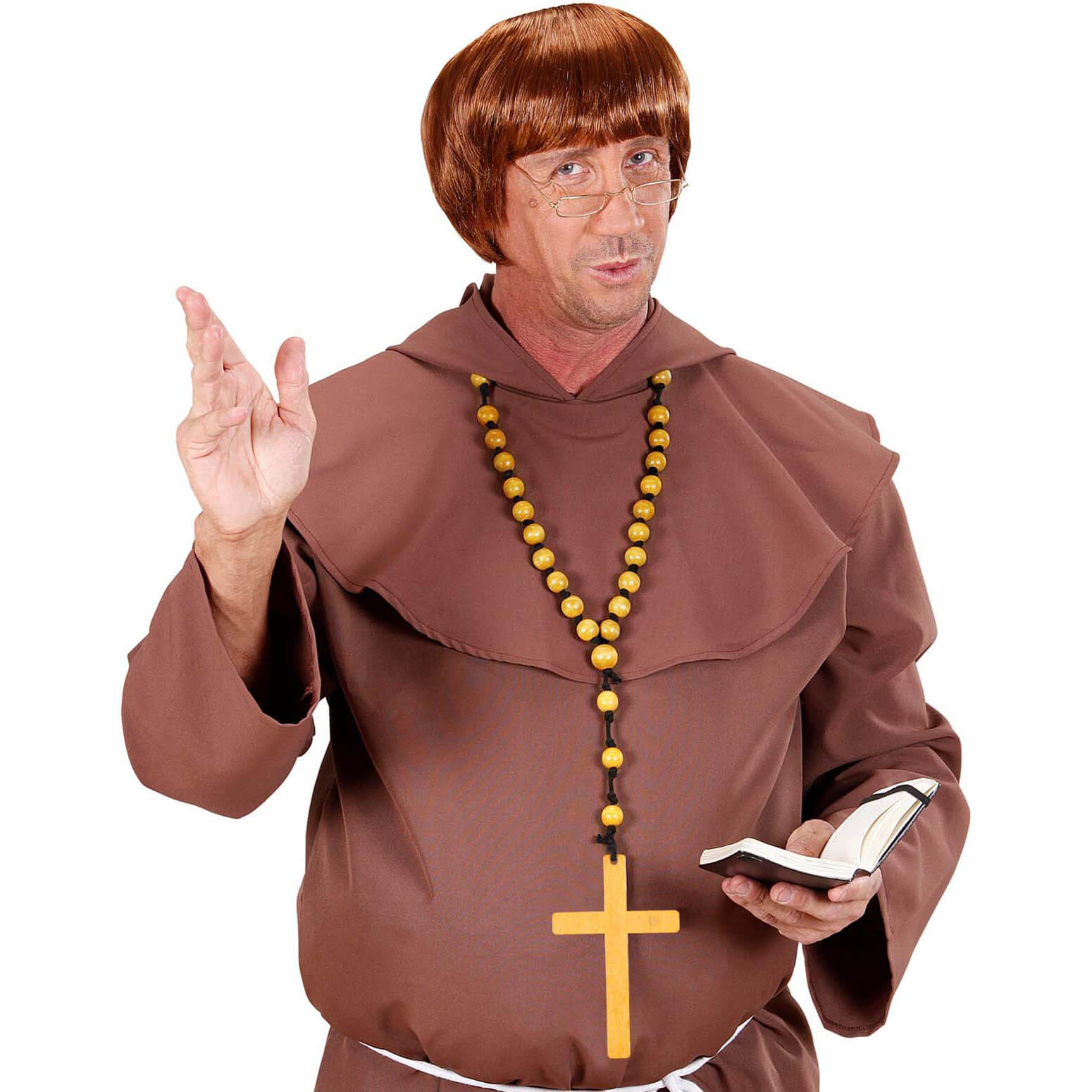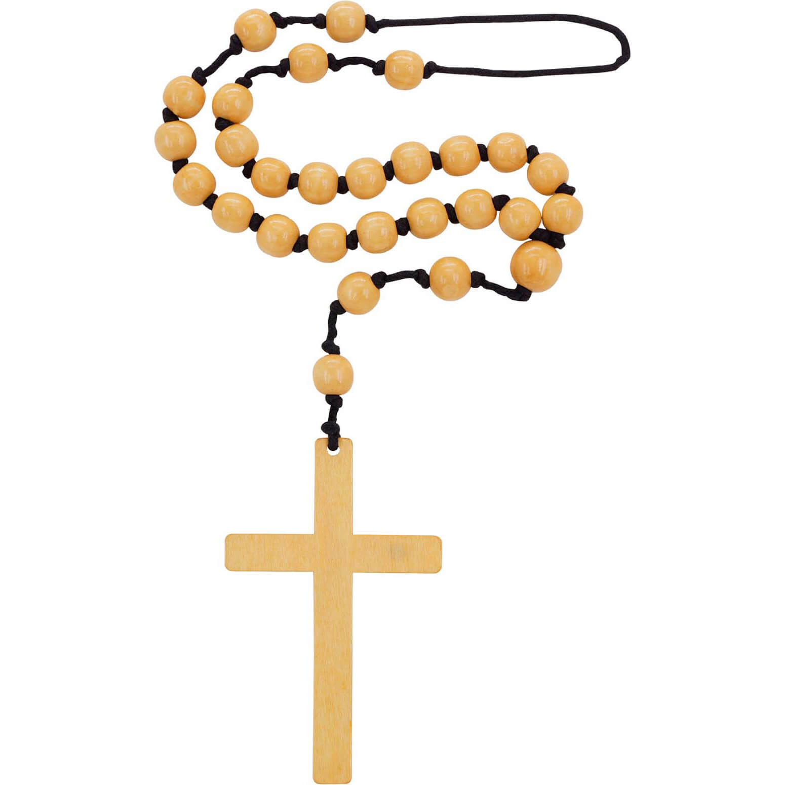 Kreuz Halskette großer Rosenkranz in Holzoptik beige-schwarz – (ARTIKEL/REFERNZ: 8003558187409/WI1874M – Kategorie/Suche: – Hersteller: Widmann S.r.l.)