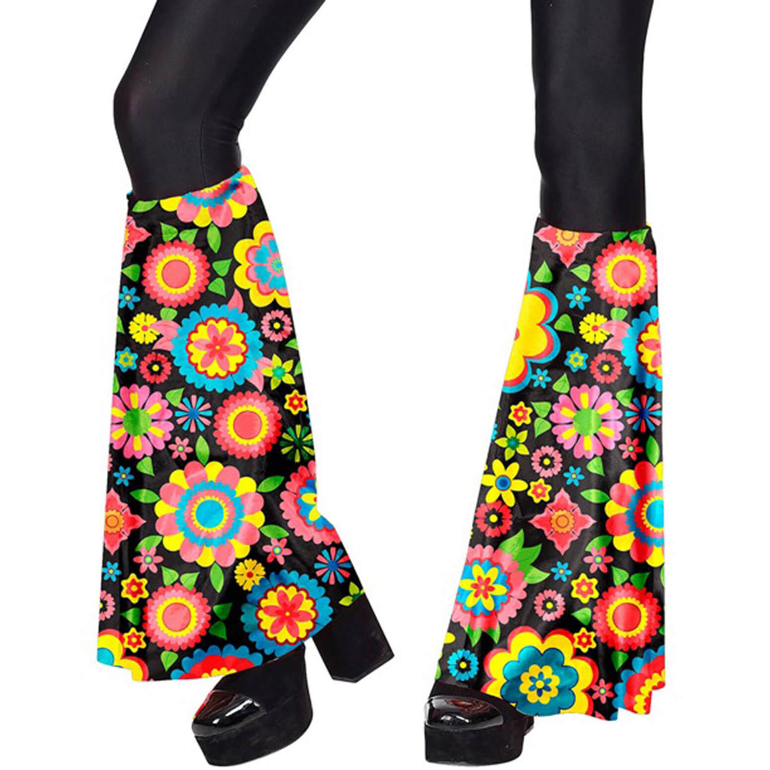70er Jahre Hippie Hosenschläge+Stirnband Motiv Colorful Flowers Pril Blumen schwarz-bunt – (ARTIKEL/REFERNZ: 8003558187621/WI18762 – Kategorie/Suche: – Hersteller: Widmann S.r.l.)