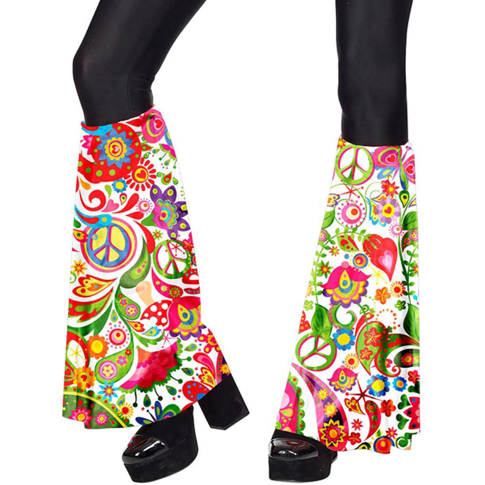 70er Jahre Hippie Hosenschläge+Stirnband Motiv Peace und Paisley weiß-bunt