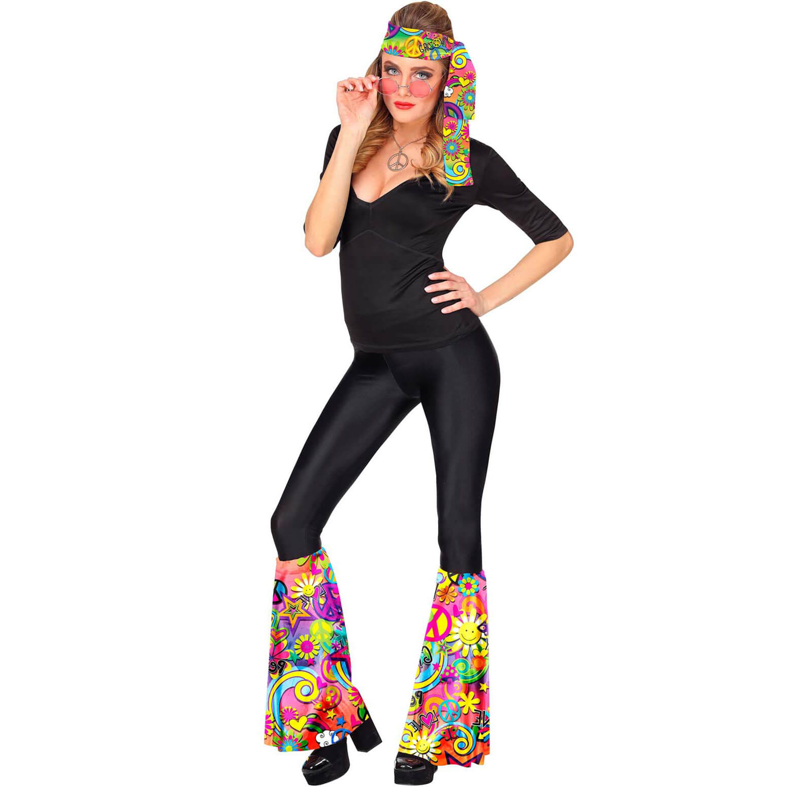 70er Jahre Hippie Hosenschläge+Stirnband Motiv Peace und Love bunt