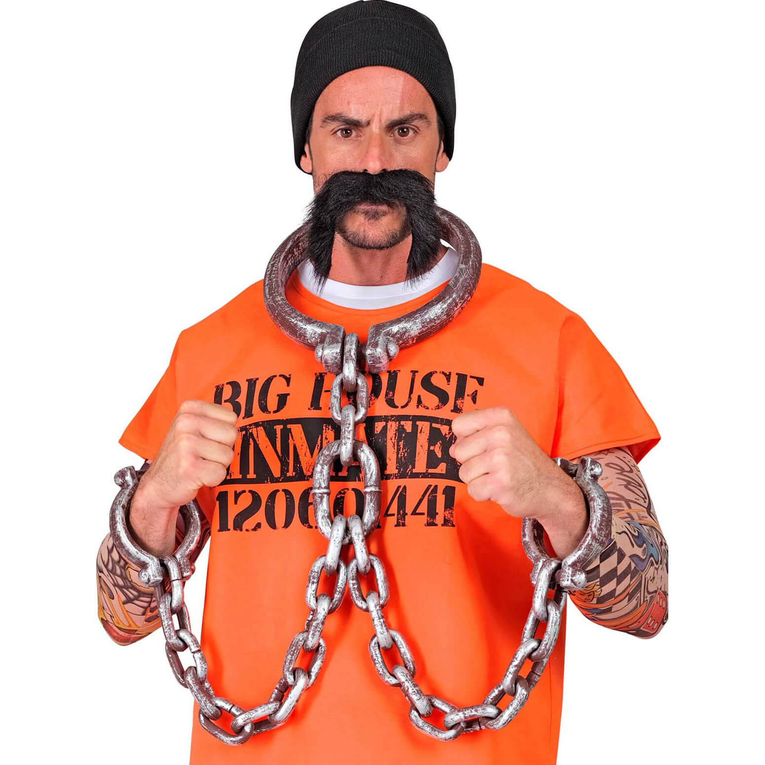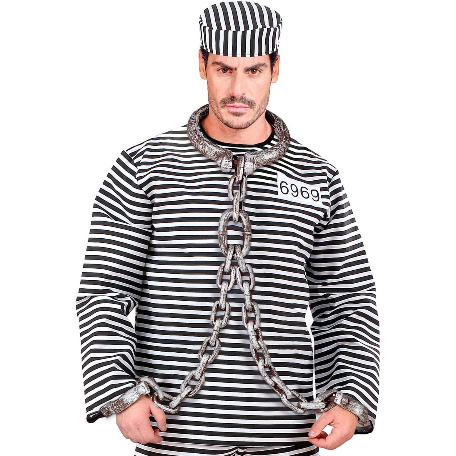 Sträfling Knasti Handschellen mit Halsfessel wie echt auch für Western oder Mittelalter oder Guantanamo silber-schwarz – (ARTIKEL/REFERNZ: 8003558191901/WI1919N – Kategorie/Suche: – Hersteller: Widmann S.r.l.)