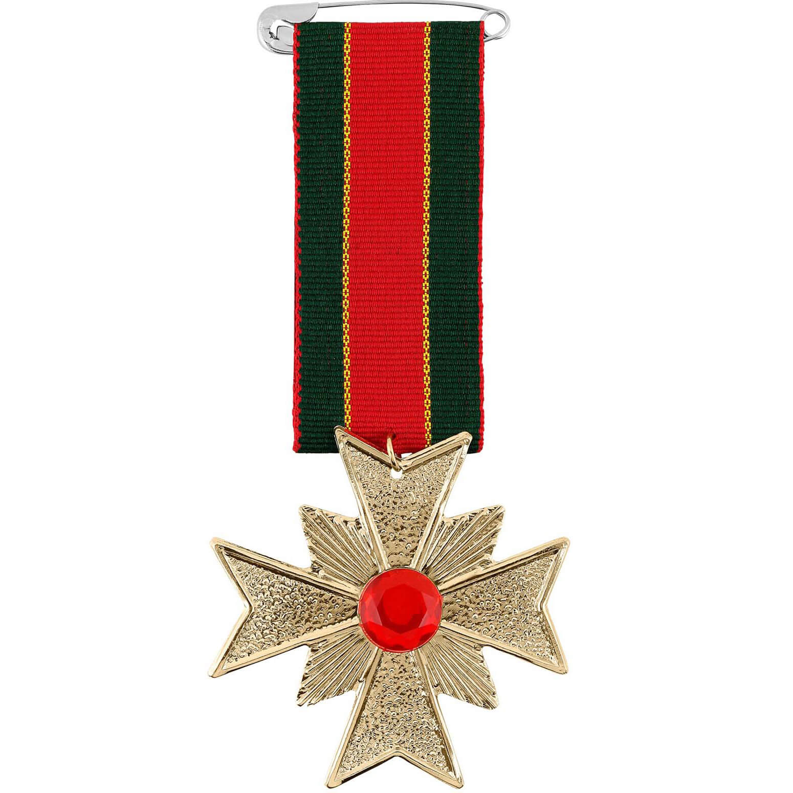 Edelhistorische/Uniform Brosche Orden am Band goldene Ehrenmedallie zum Anstecken Kreuz rot-grün – (ARTIKEL/REFERNZ: 8003558210312/WI21031 – Kategorie/Suche: – Hersteller: Widmann S.r.l.)