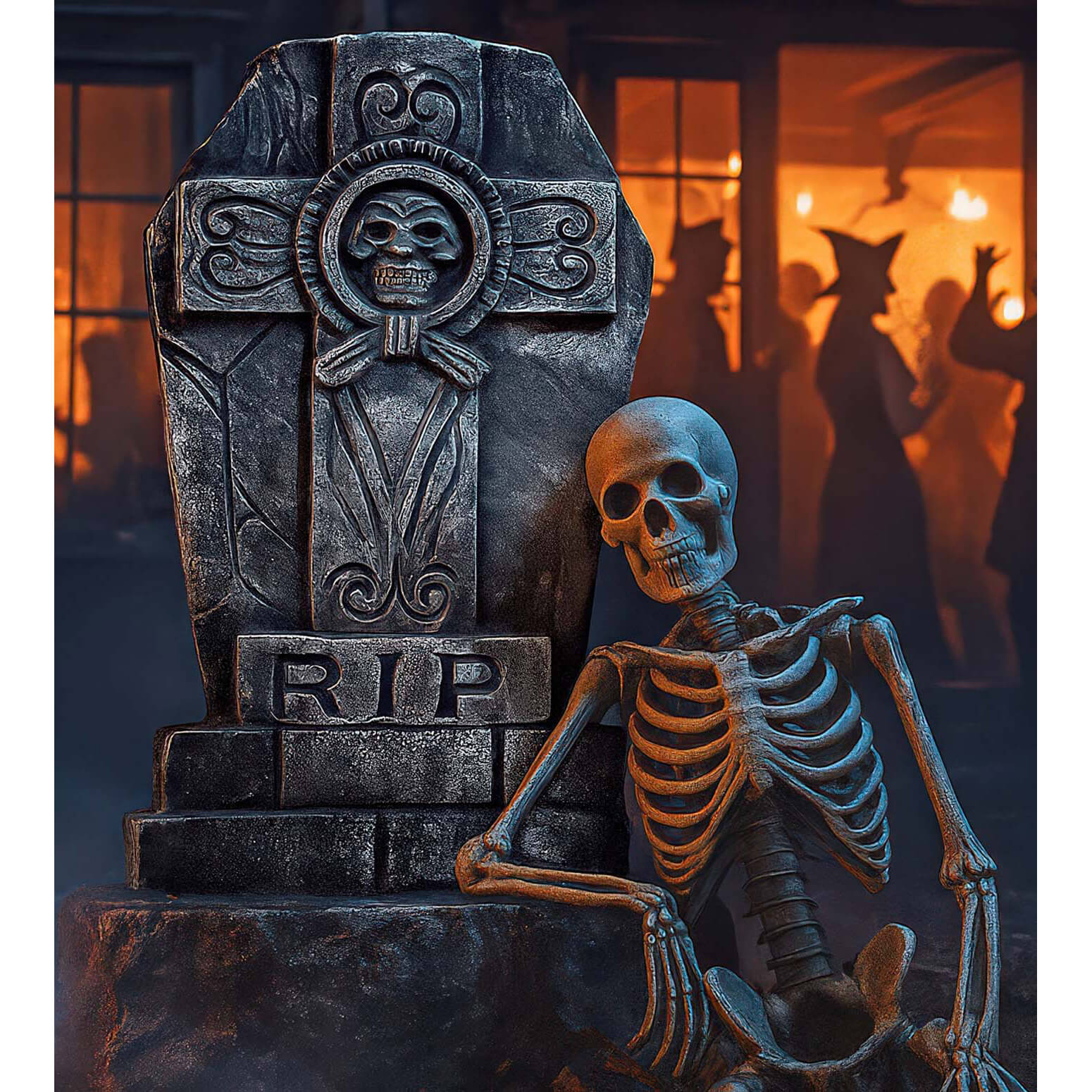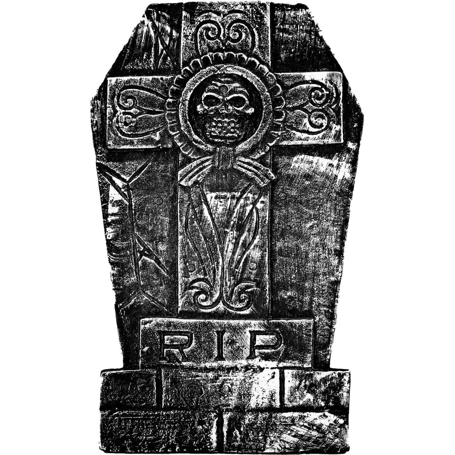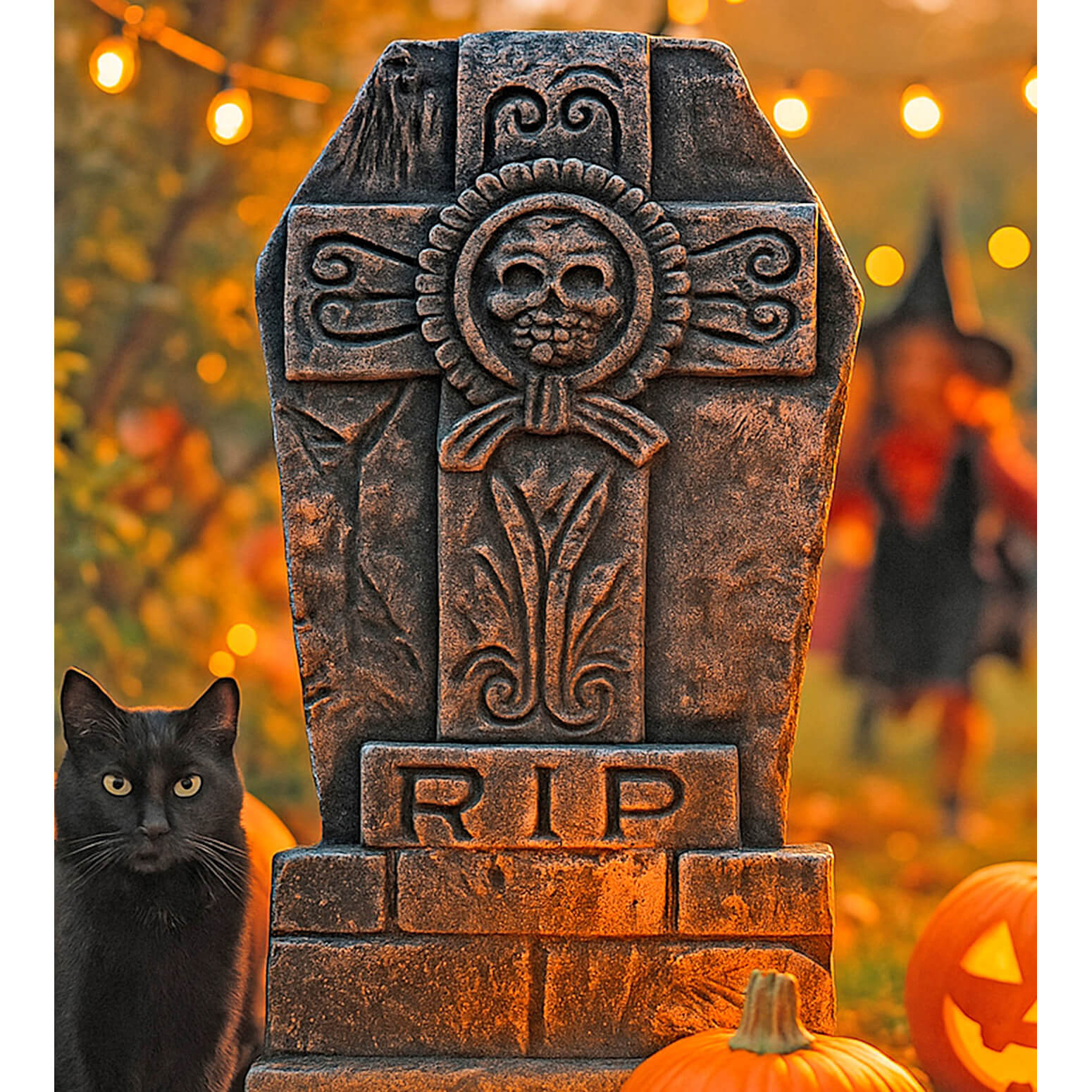Grabstein RIP Deko Standfigur aus Styropor 30x49cm Schädelkreuz grau-weiß